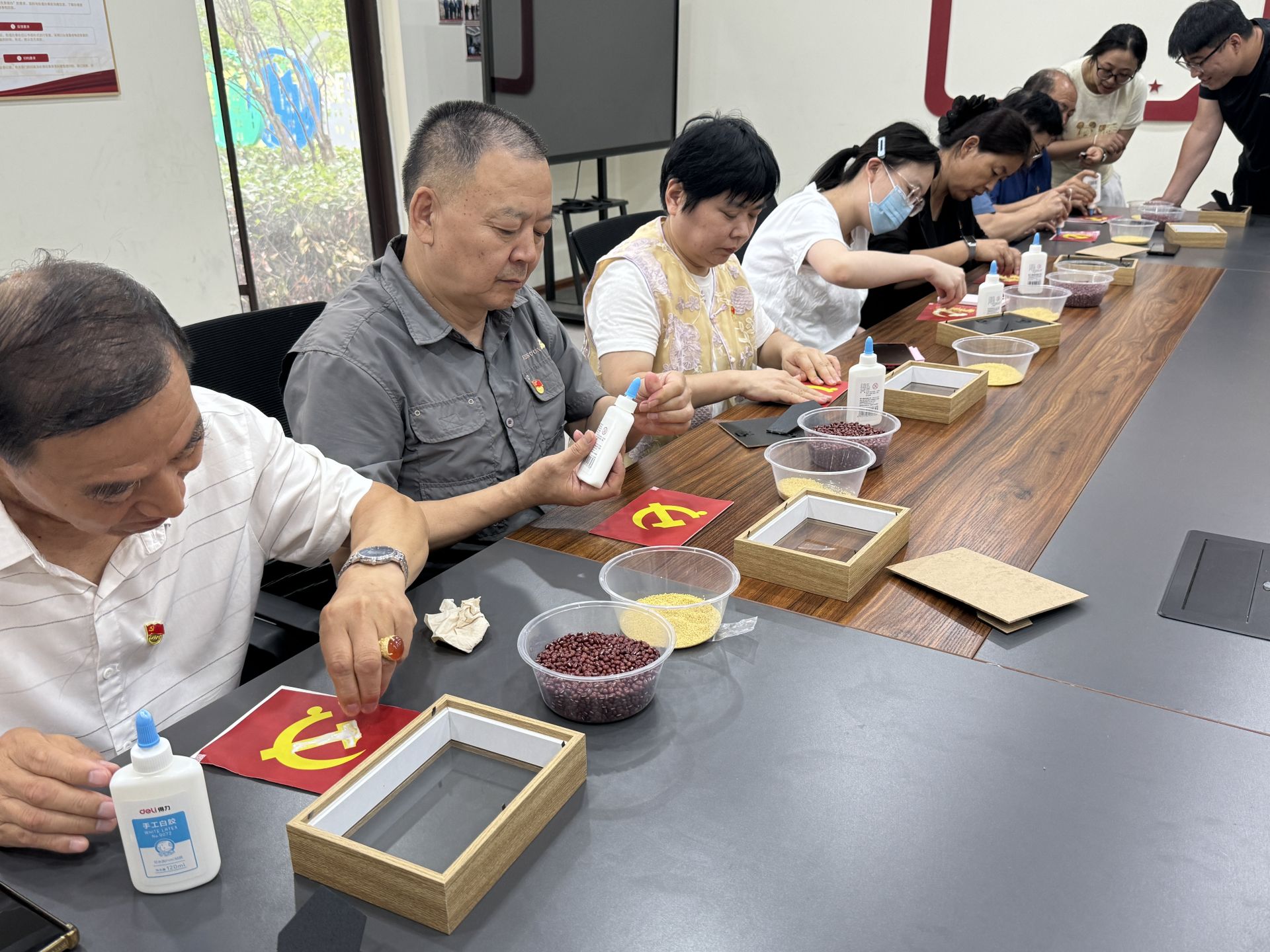 知识竞赛的余温未散,一场充满创意与温情的“谷物贴画”手工活动又拉开了帷幕。活动现场,红豆、小米等普通的谷物摇身一变,成为了“画笔”,将自己的创意和对党的热爱融入到每一幅作品之中,在动手实践中增长知识,感受手工制作的乐趣。大家齐心协力,用谷物在相框中细心地勾勒出心中的党徽,每一幅都是党员们对党最真挚的告白,承载着他们对党的无限忠诚与热爱。