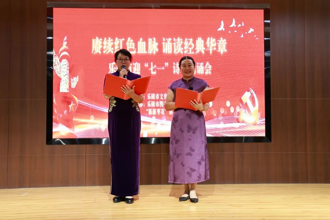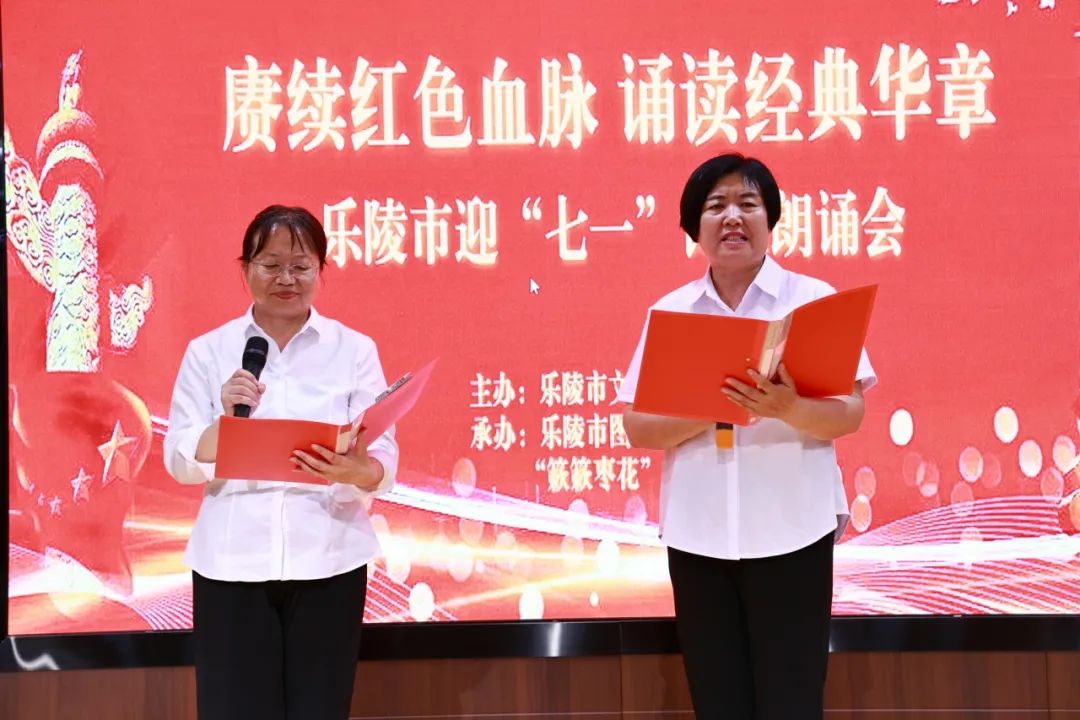 为庆祝中国共产党成立104周年,6月27日,由乐陵市文化和旅游局主办,乐陵市图书馆、“簌簌枣花”读书会承办的“赓续红色血脉·诵读经典华章”乐陵市迎“七一”诗歌朗诵会举行。