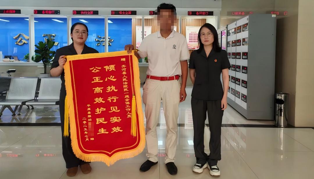 “感谢法院公正判决,让我感受到司法的温暖。”李某某专程从平原县赶到齐河法院,向刘保国法官赠送锦旗。