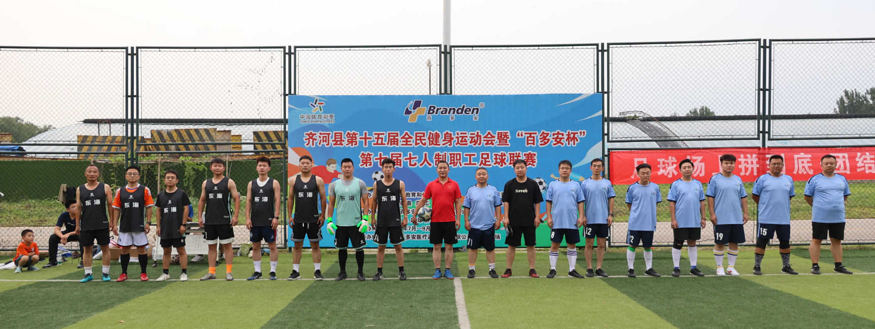 7月19日,齐河县第十五届全民健身运动会暨“百多安杯”第七届七人制职工足球联赛开幕。来自全县机关企事业单位、乡镇街道的17支队伍参赛。此次比赛,将进行44场比赛,300余名足球运动员同场竞技,最终决出县直单位组和乡镇街道组两个团体冠军。