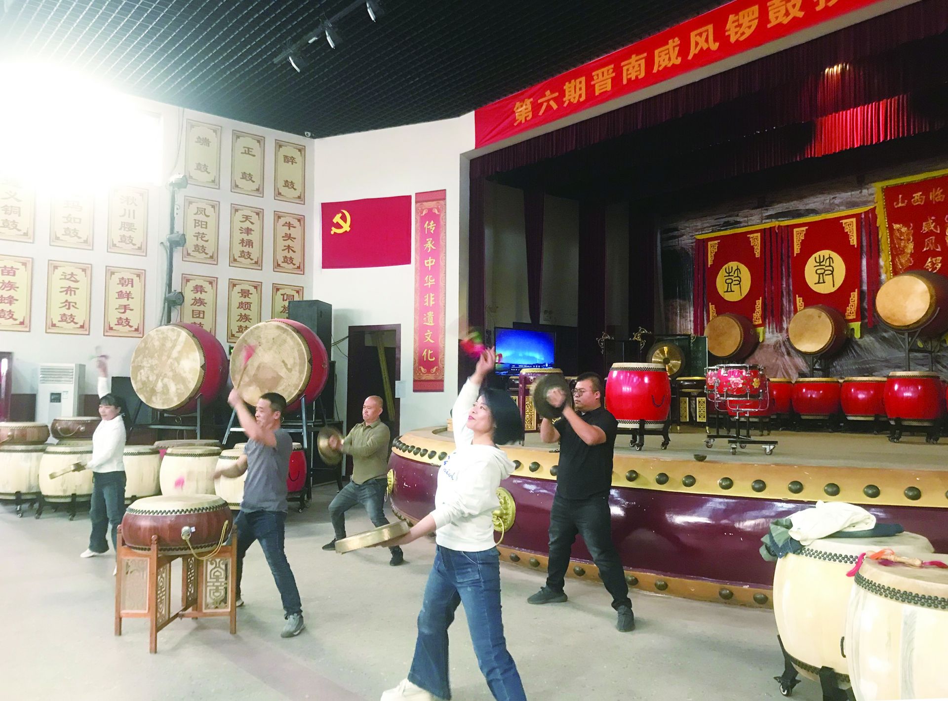 这股子劲头,是从山西学来的“真传”。90后鼓手刘佳正最让人佩服,在工地上绑钢筋呢,一听队里有演出,当即跟工头请假:“村里需要我敲鼓,说什么我也得赶回去!”队员们对锣鼓的痴迷,早融进了柴米油盐:吃饭时想起谱子,手指在桌子上敲得“当当”响;坐沙发上看电视,双手也不闲着,“咚咚锵”地打节拍。