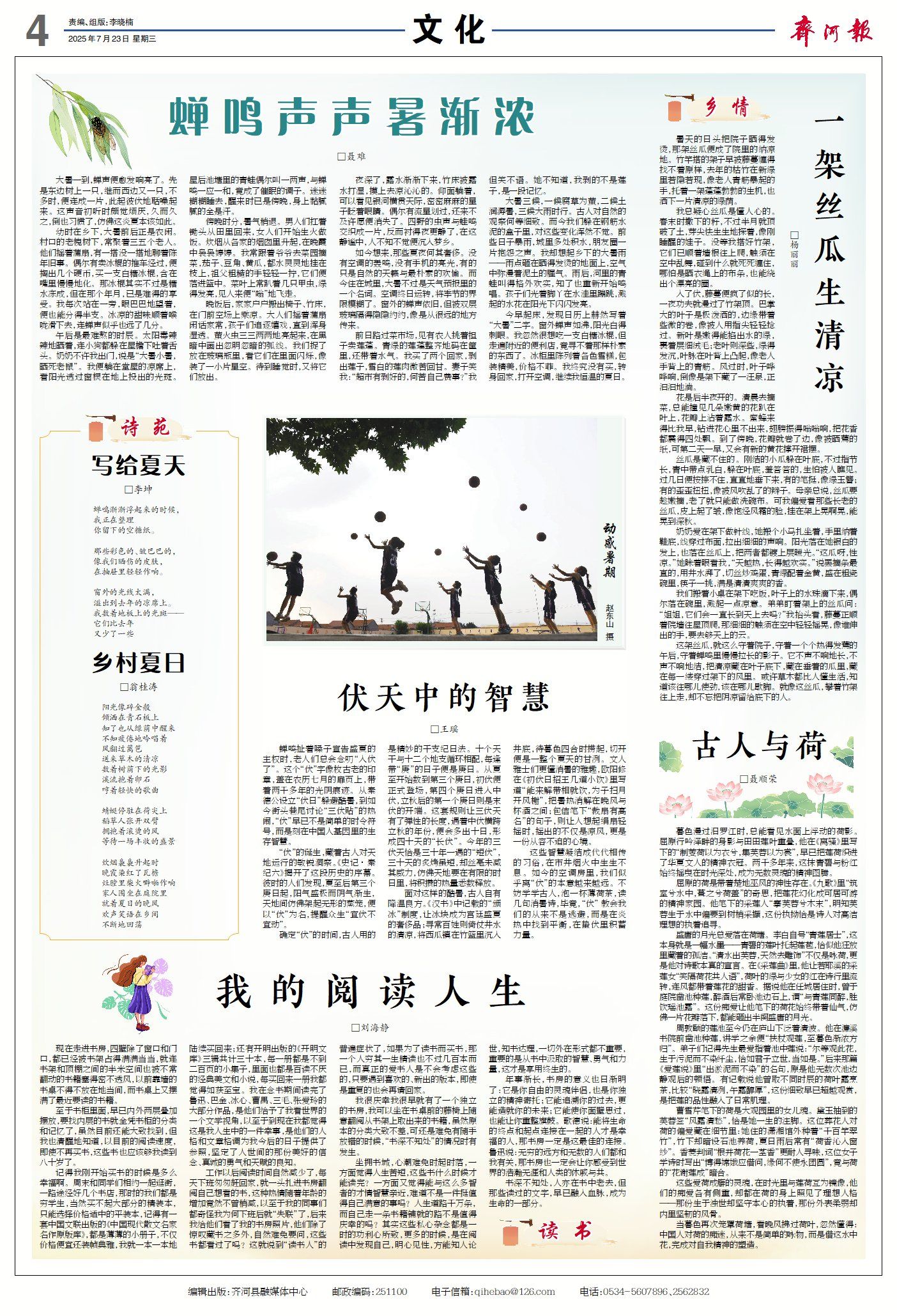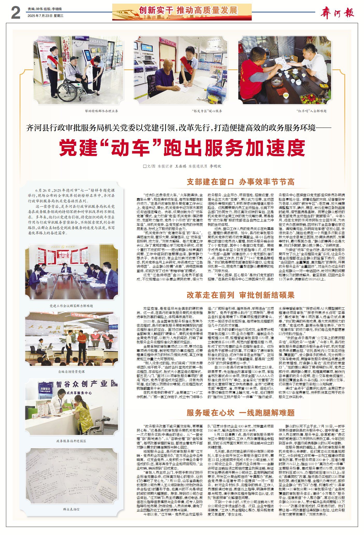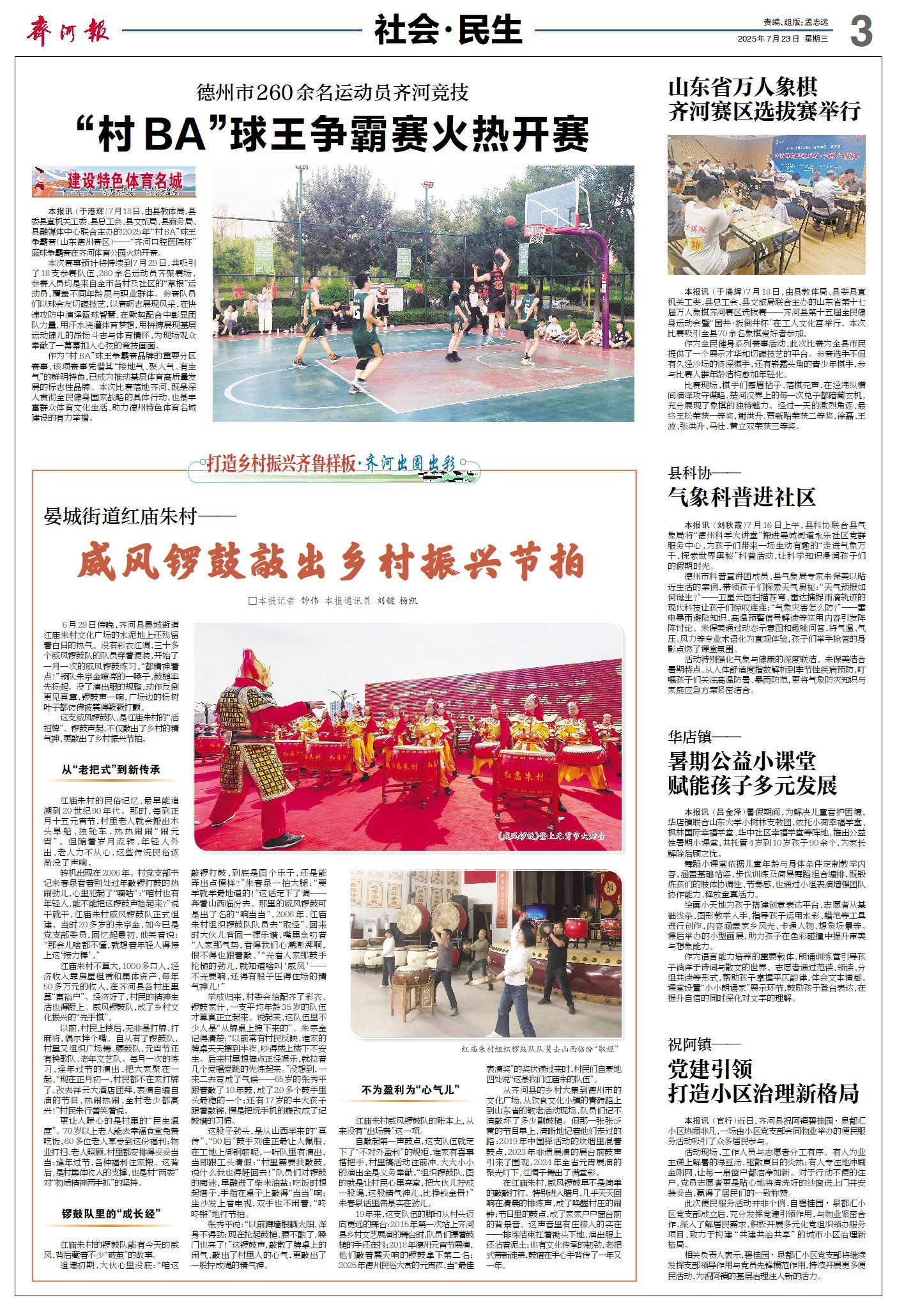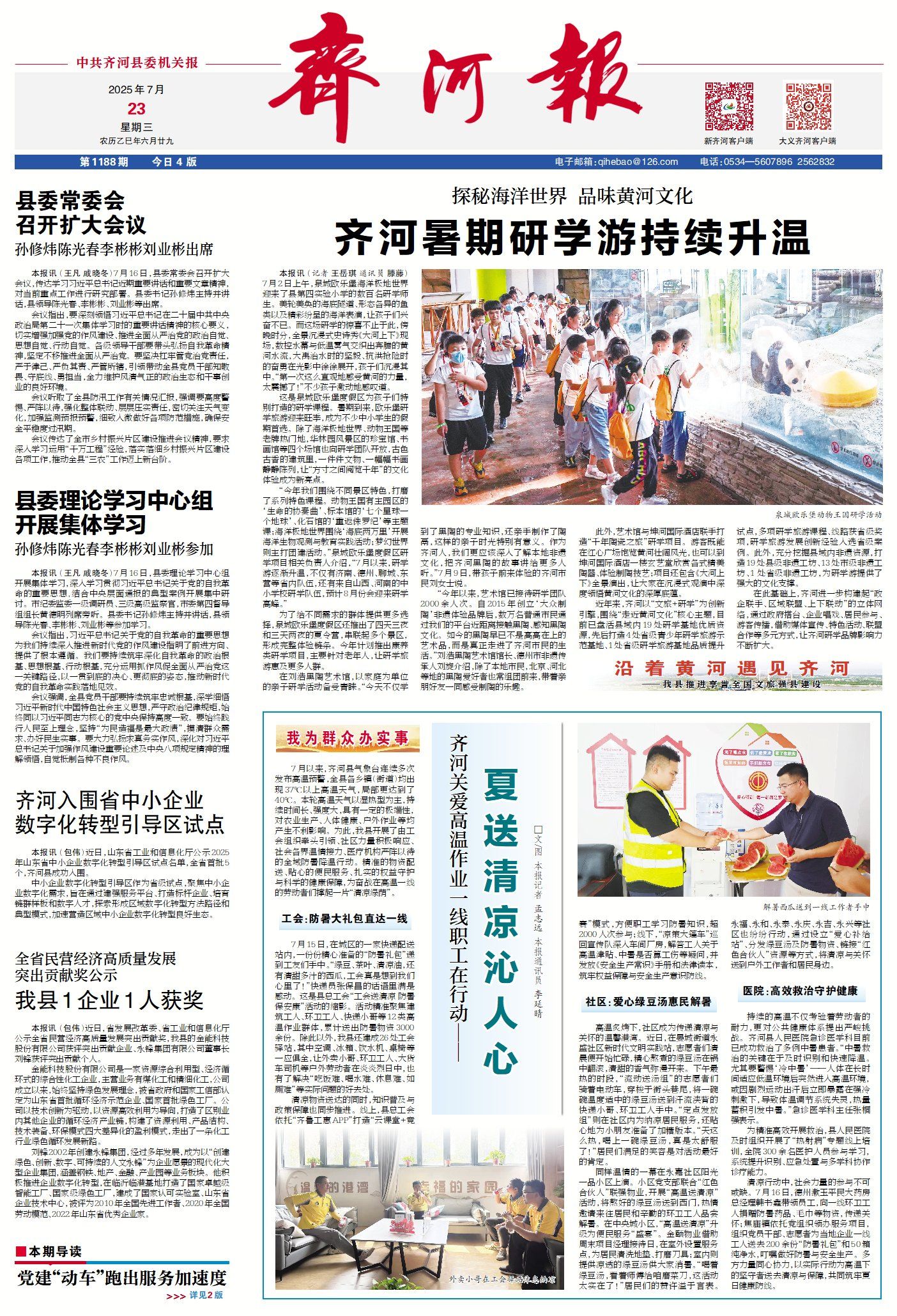 齐河县新闻周报(7月17日至7月23日) ©原创 2025-07-23 09:48 德州日报 0 ▶齐河暑期研学游持续升温。(查看详情) ▶齐河:夏送清凉沁人心。(查看详情) ▶解码齐河党建 “动车组”:审批服务的速度与温情背后是这样的力量。(查看详情) ▶“村 BA”球王争霸赛山东德州赛区火力开战。(查看详情) ▶齐河县晏城街道红庙朱村:威风锣鼓敲出乡村振兴节拍。(查看详情) ▶文化 | 蝉鸣声声暑渐浓。(外六篇·首) 德州日报新媒体出品编辑|李晓楠审核|钟伟 终审|尹滨 (作者:德州日报)