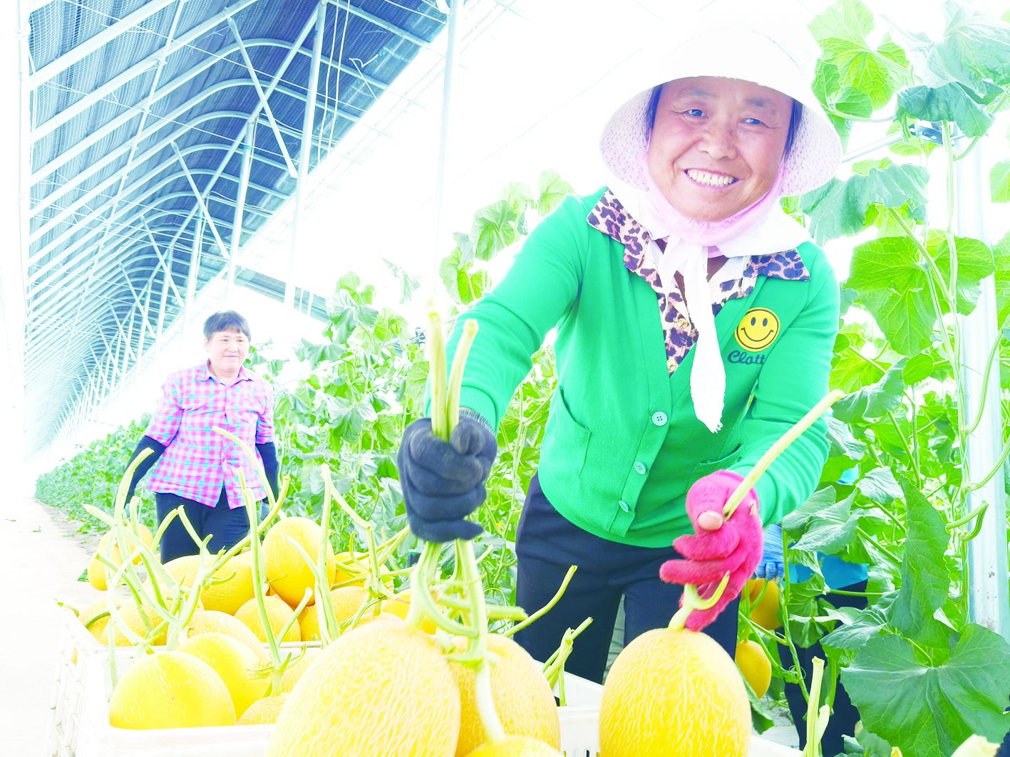 7月21日清晨四五点钟,在平原县张华镇现代农业产业园智能温室大棚内,种植户采摘下最后一批网纹瓜。后续,园区将实施闷棚土壤消毒作业,为下一轮种植做准备。今年,得益于水肥一体化、智能温控等先进技术,园区41个大棚的网纹瓜喜获丰收,每棚产量突破1万公斤,单茬产值达到3万元以上,带动周边村庄的200余名群众就业。