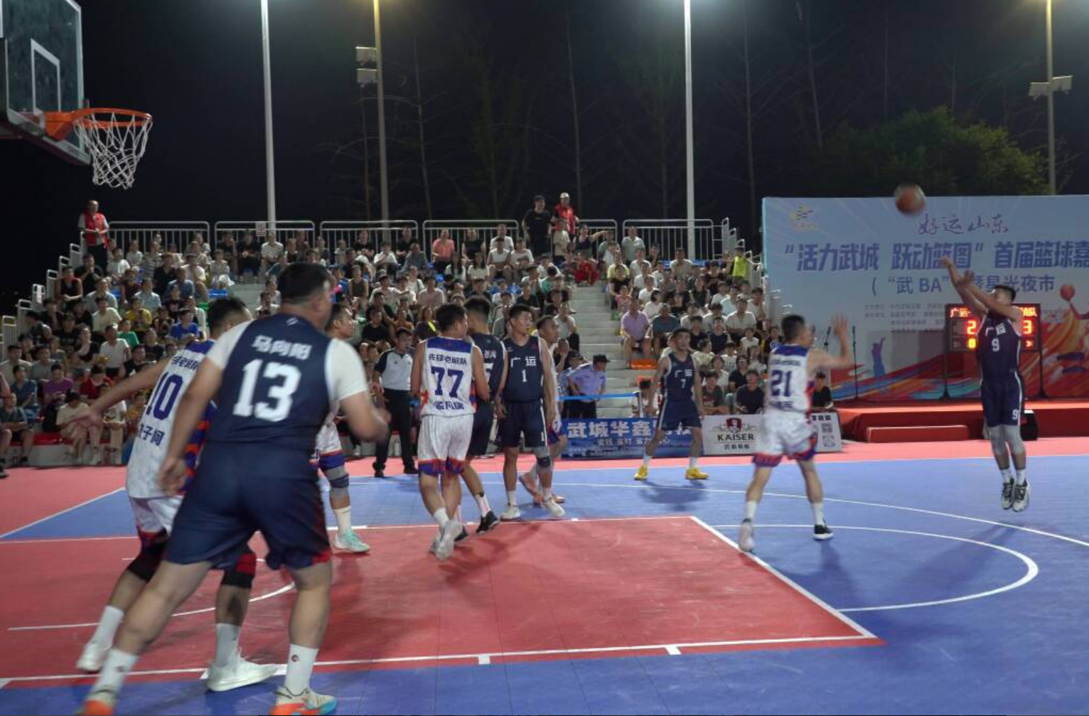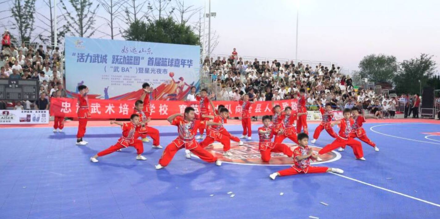 8月2日,武城县“活力武城 跃动篮图”首届篮球嘉年华(“武BA”)暨星光夜市开幕式在贝州湖北广场举行,2000余名群众观赛。