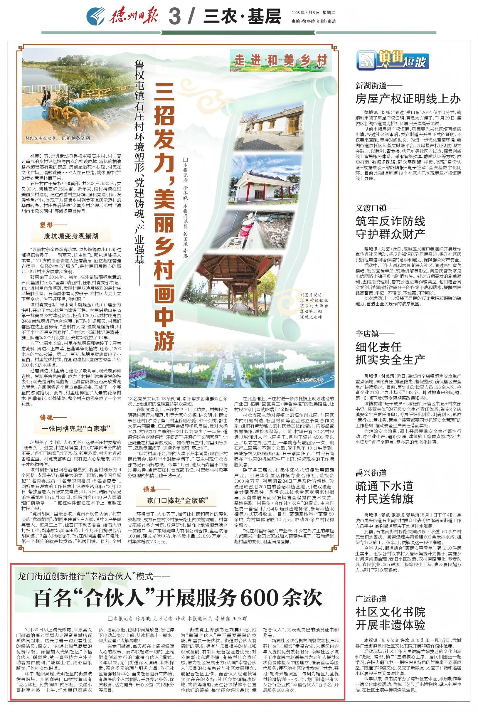 新湖社区联合枫林阁餐饮老板张菲菲打造“三顿饭”幸福食堂,为辖区内老年人提供免费就餐服务;南城社区水坑王卫生室医生赵霞每月为老年人提供2次免费体检及中医理疗、慢病管理等医疗服务;莲花池社区轮滑教练宁世龙,开设“轮滑兴趣课堂”,每周为辖区儿童提供轮滑培训……如今,龙门街道已有涉及各行各业的“幸福合伙人”百余名,开展服务600余次。
