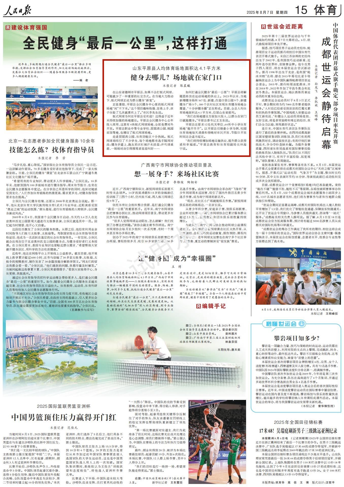 8月7日,《人民日报》体育版“建设体育强国”栏目关注德州,发布稿件《山东平原县人均体育场地面积达4.1平方米 健身去哪儿?场地就在家门口》。全文如下: