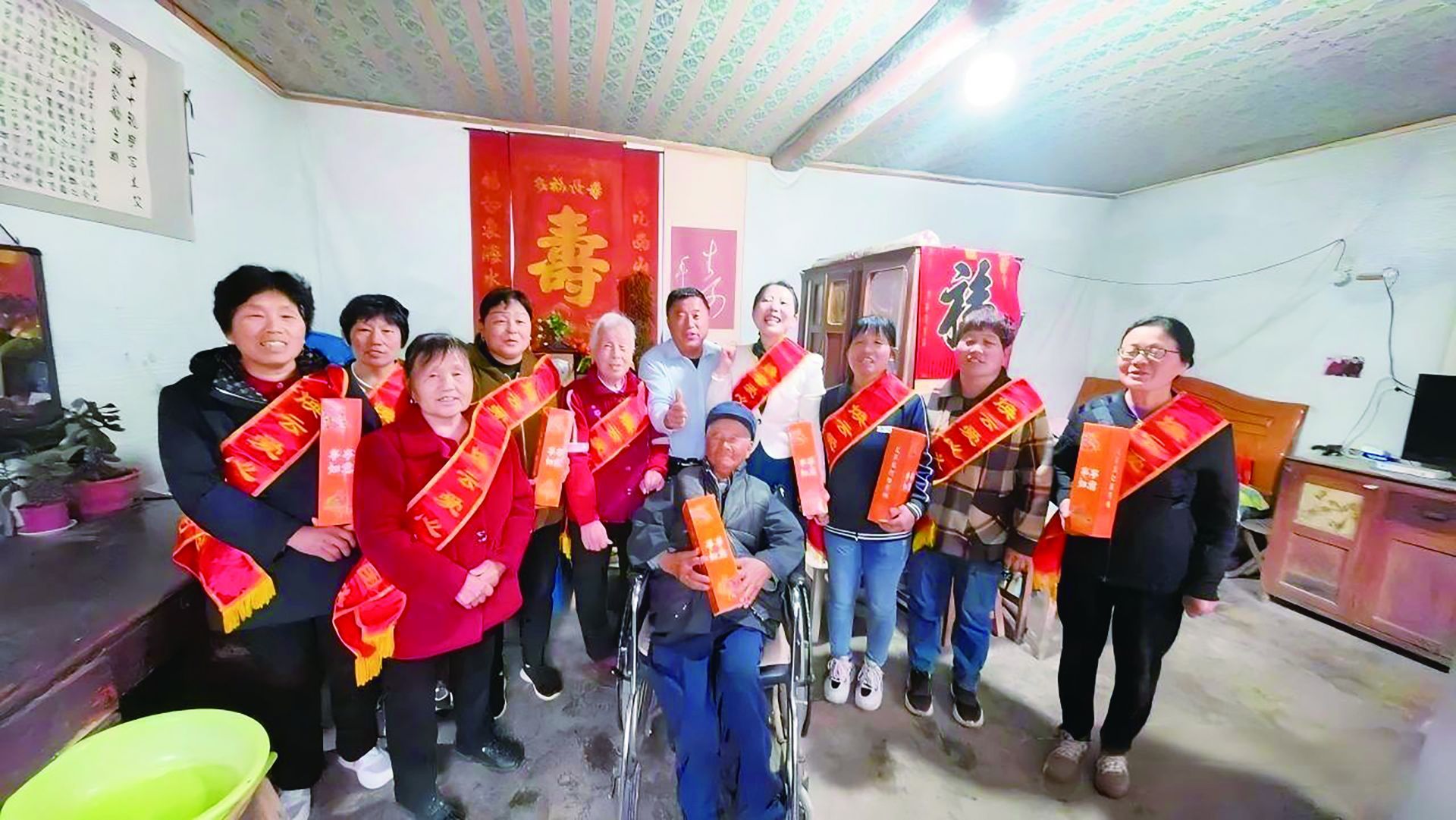 不仅是传承孝道文化,义和村的孝道实践更是具象可感。2013年至今,每一届“5.15孝亲感恩节”都是村庄最为温情的盛典。活动现场人声鼎沸、暖意浓浓。“孝亲感恩之星”的评选表彰,让身边的孝老模范熠熠生辉,传递榜样力量。“献爱心送健康”更是义和村对“老吾老以及人之老”最温情的实践:村子成立新时代文明实践爱心帮扶团,对村内老人展开一对一帮扶,带去日常陪伴与服务。重阳节等重大节日期间,这一关爱持续升温,爱心帮扶团在高焕云的带领下,将节日祝福化作富含科技关怀的“石墨烯自发热护腰”等爱心礼物,送到每一位需要关爱的老人身边。
