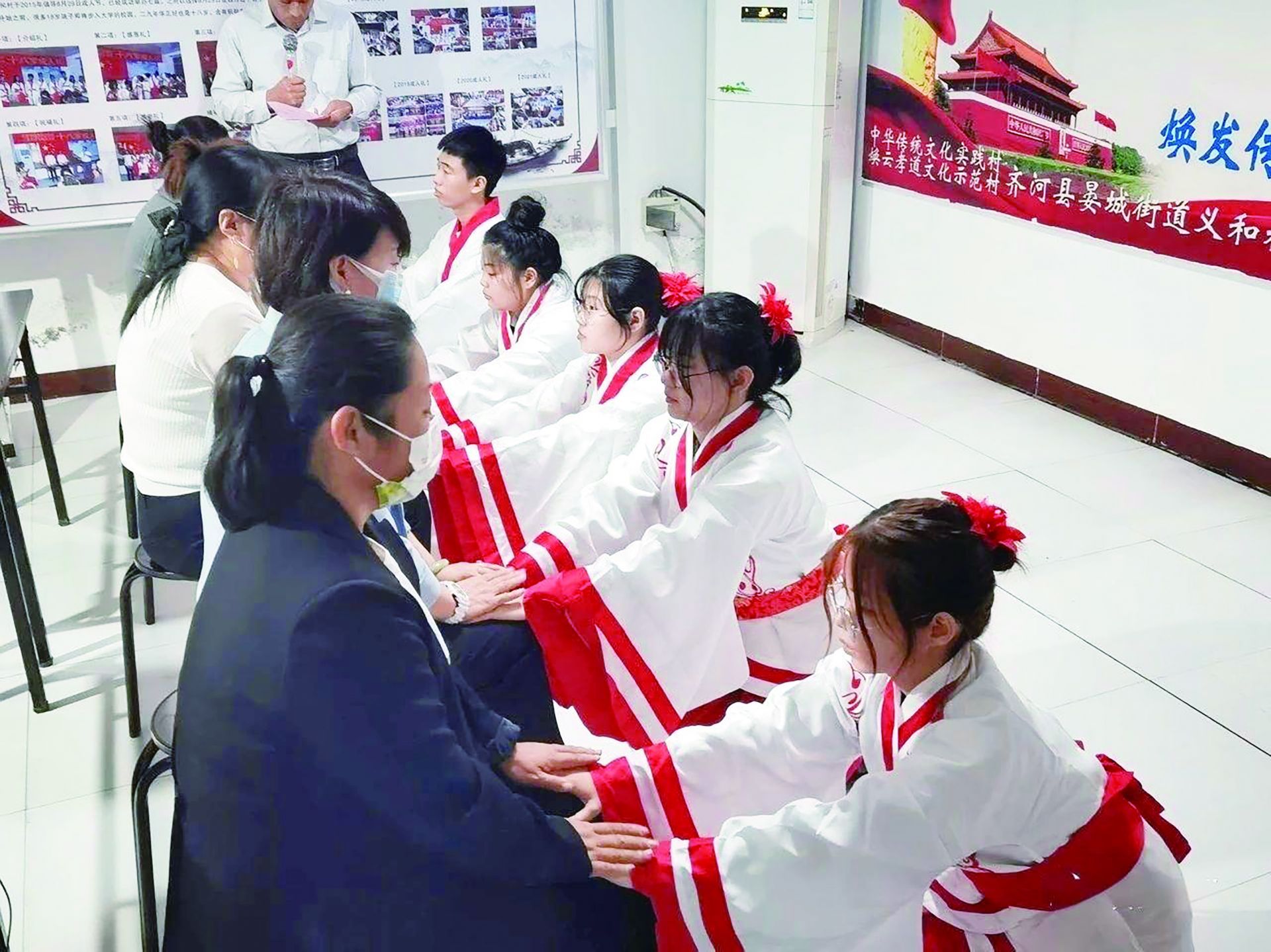 初秋的夜晚,齐河县晏北街道义和村孔子学堂灯火通明。舞台上,村民李秀云正动情分享着丈夫的孝心事迹:“他呀不太会说话,可对两边老人都掏心窝子好……”话音未落,台下50多位乡亲的掌声已汇成暖流。这并非普通的村民聚会,而是义和村持续举办十二年、每周五雷打不动的孔子学堂“国学大讲堂”现场。从“夫妻欣赏会”到“孝亲感恩节”,从整理濒临失传的“打夯小调”到连续十年为青年举办传统成人礼,这个曾因日寇暴行被迫迁徙、又以“义薄云天、和睦相邻”立名的村庄,正以深厚的孝亲文化焕发新时代的凝聚力。