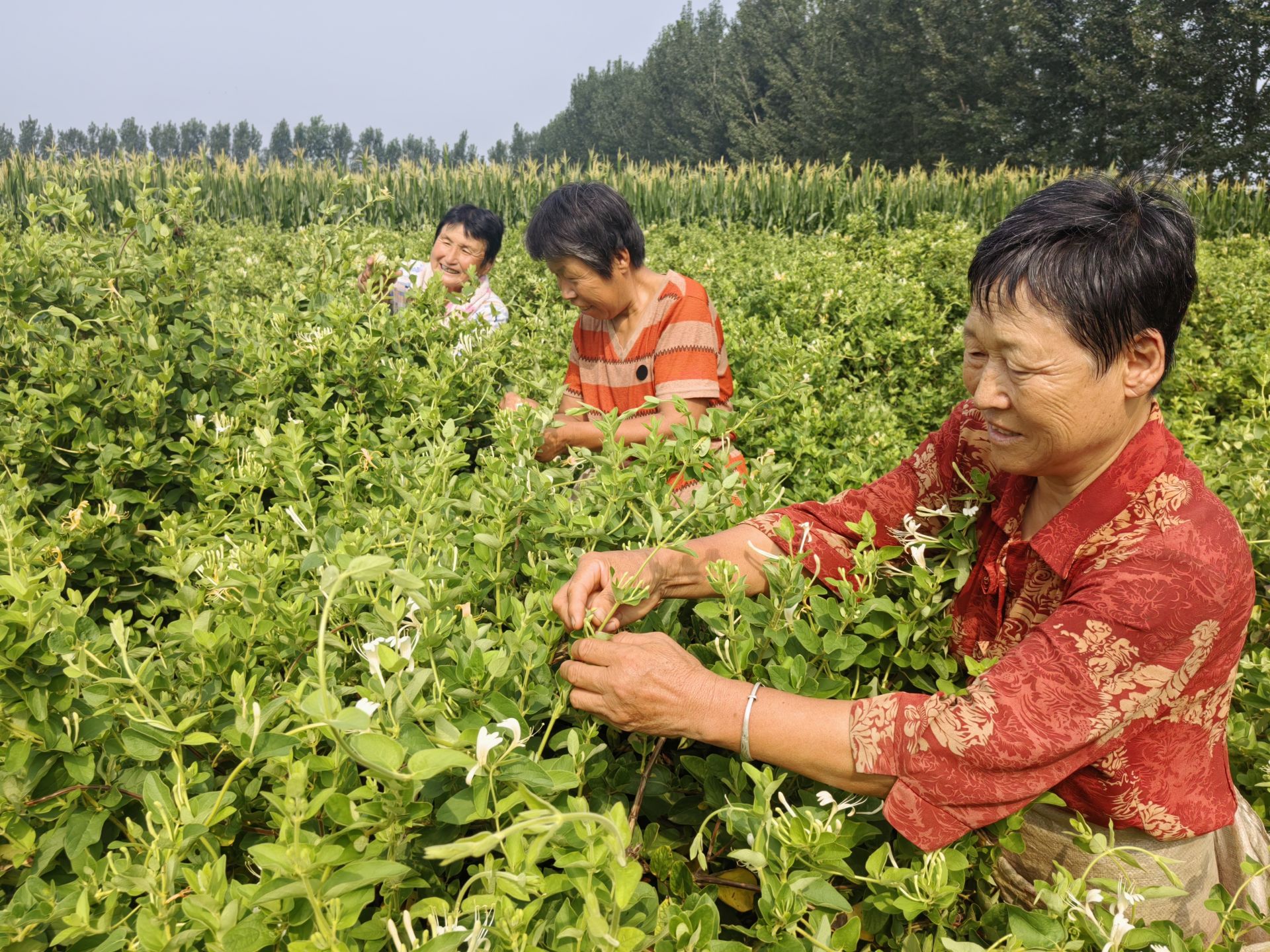 近日,平原县恩城镇陈营村的金银花种植园里,连片的金银花竞相绽放,村民们穿梭在花丛中忙着采摘。负责人陈英文介绍,种植园流转村内土地60亩、投资60余万元建设而成,植了60多亩金银花。今年金银花长势良好,预计每亩年产干花100公斤,平均每亩纯收入3000元左右。此外,种植园还配套建设了加工车间,使用先进烘干设备加工干花,保障品质且便于储运。