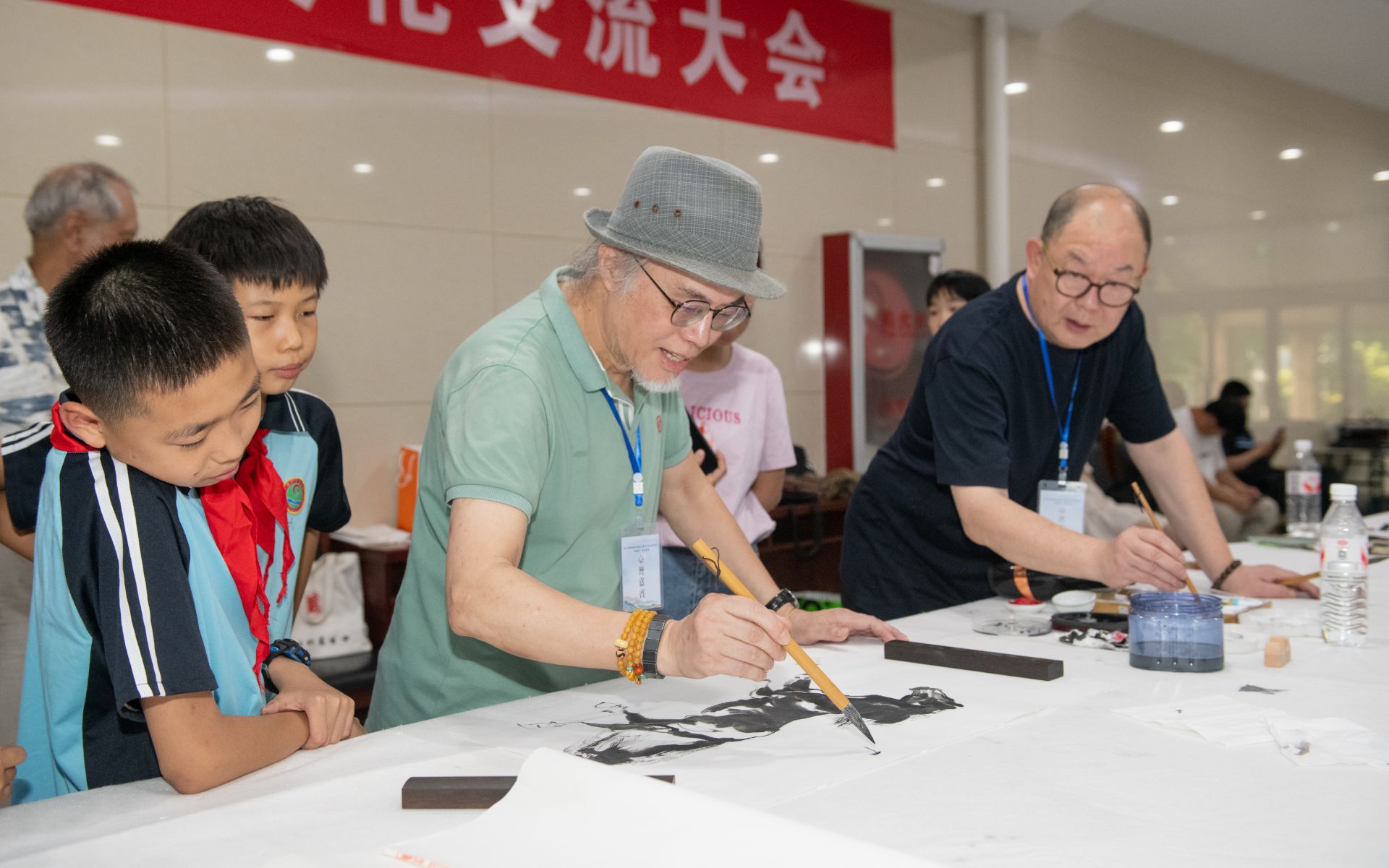 在笔会上,两岸书画家与同学们同台创作,或细致勾勒,或豪放挥洒,作品寄托着两岸同根同源的深情厚谊。台湾中华亚细亚艺文协会会长王德亮表示:“德州是文化书画之乡,这里对我们台湾艺术家很有启发。我们要把中华文化发扬光大,让更多台湾朋友了解中华文化的根源。”