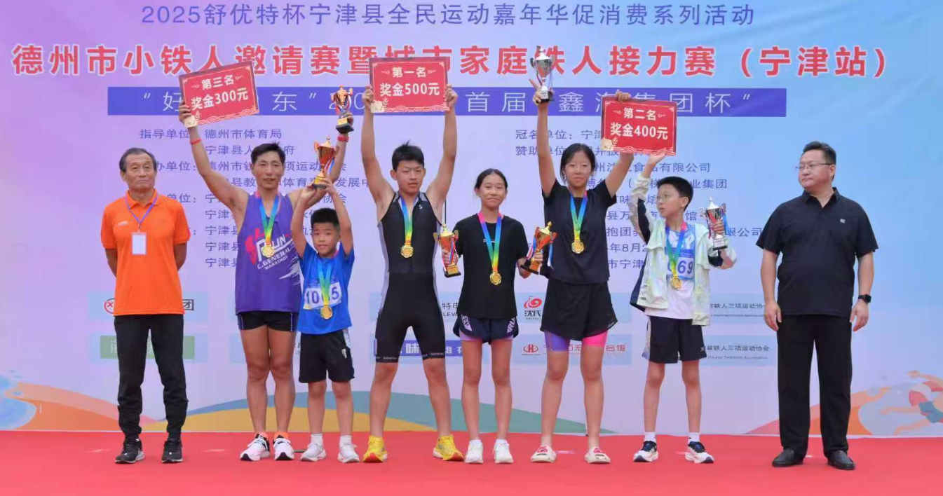 8月24日,“好运山东”首届“鑫海集团杯”德州市小铁人邀请赛暨城市家庭铁人接力赛(宁津站)在宁津县康宁湖公园举行。此次赛事由德州市体育局、宁津县人民政府指导,德州市铁人三项运动协会、宁津县教育和体育事业发展中心主办,宁津县铁人三项运动协会、宁津县泳者胜游泳俱乐部承办,并得到宁津县鑫海集团冠名支持。