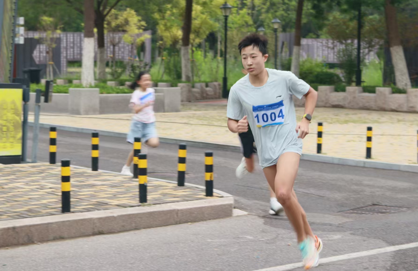 在转换区内,小选手们动作迅速而有序,脱下泳帽、穿上跑鞋,一气呵成。随后进入跑步赛段,小运动员们迎着朝阳奔跑在康宁湖公园的绿道上。虽然经过游泳赛段的消耗,但每位选手都坚持冲向终点,其中不少小选手面色通红、汗流浃背,却依然保持着坚定的步伐。