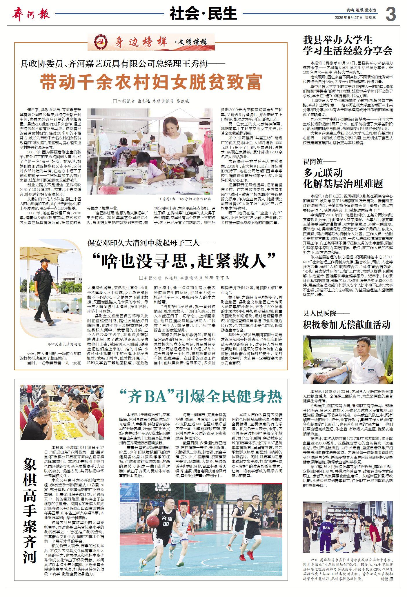 ▶齐河保安邓印久大清河中救起母子三人:“啥也没寻思,赶紧救人”。(查看详情)