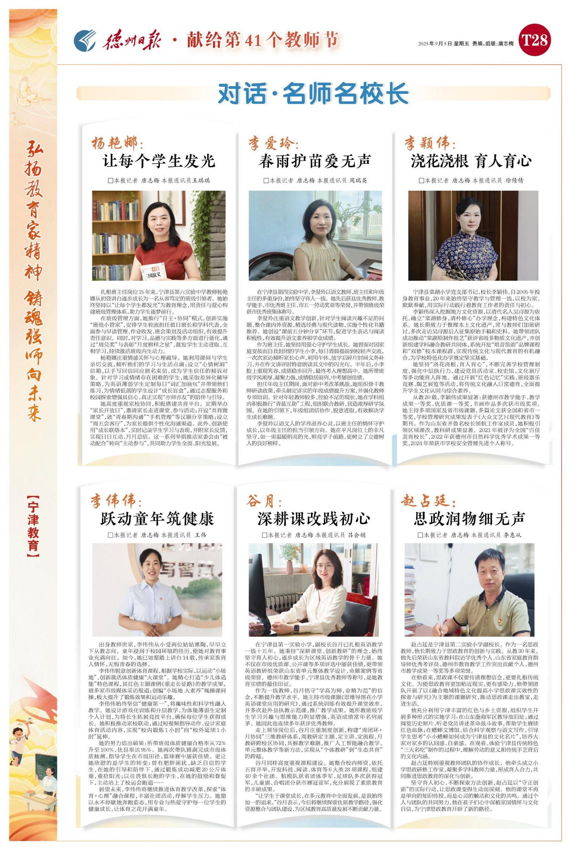 强化党建引领。全面落实党组织领导的校长负责制,优化调整8名党组织书记,组织中小学党组织书记赴聊城大学进行专题研修,有效提升其管理能力与专业素养。通过举办5次党组织书记办学治校经验分享活动,凝聚发展合力。实施“薪火”计划,选拔8名后备教育干部充实学校管理层,组织9期后备干部专题培训,为教育发展注入新活力。遴选42名榜样教师分享先进事迹与典型经验,引领全县教师共同开创高质量发展新局面。