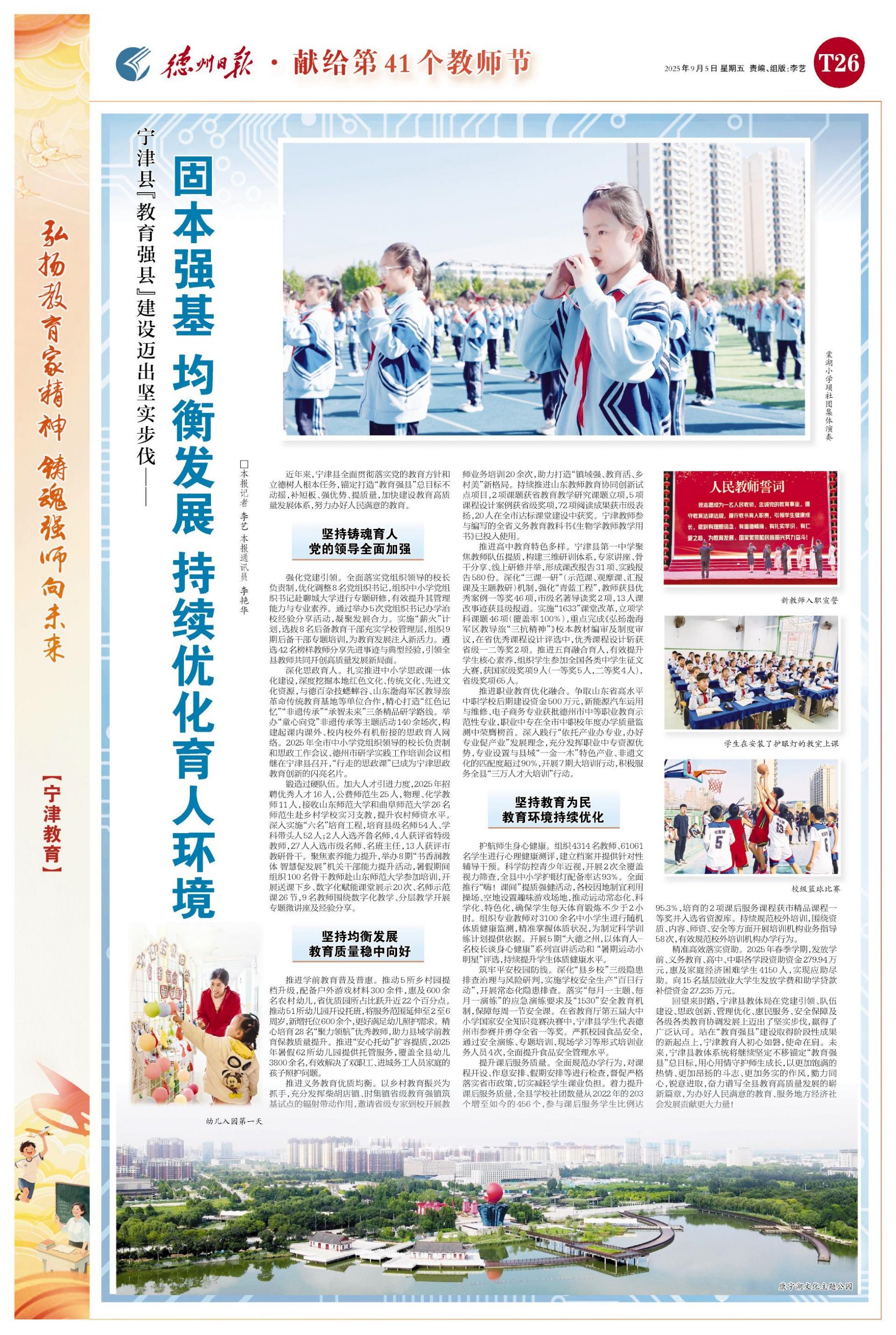 近年来,宁津县全面贯彻落实党的教育方针和立德树人根本任务,锚定打造“教育强县”总目标不动摇,补短板、强优势、提质量,加快建设教育高质量发展体系,努力办好人民满意的教育。
