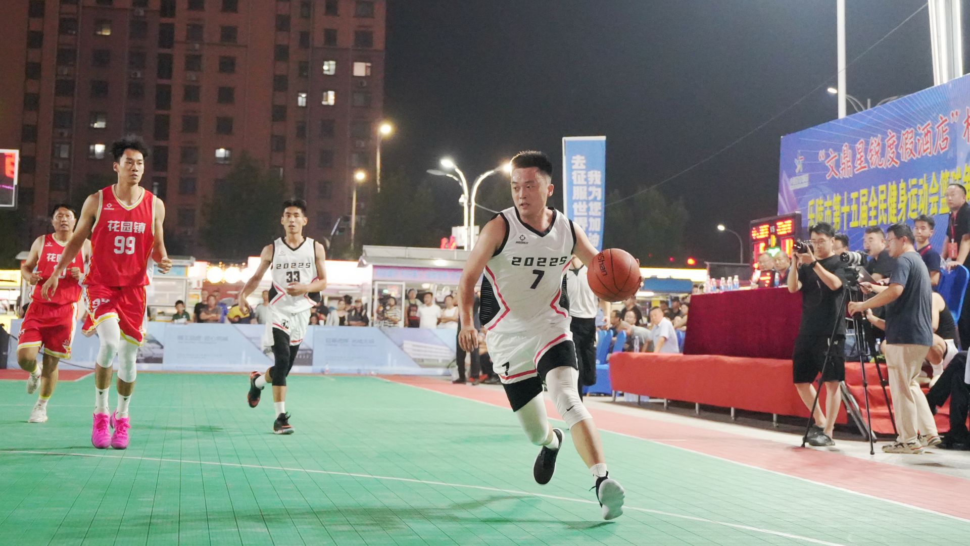 9月15日晚,2025年“文鼎星锐度假酒店杯”乐陵市篮球争霸赛在德百广场拉开帷幕。周边居民、商户和游客纷纷前来观赛,现场人头攒动,气氛热烈。