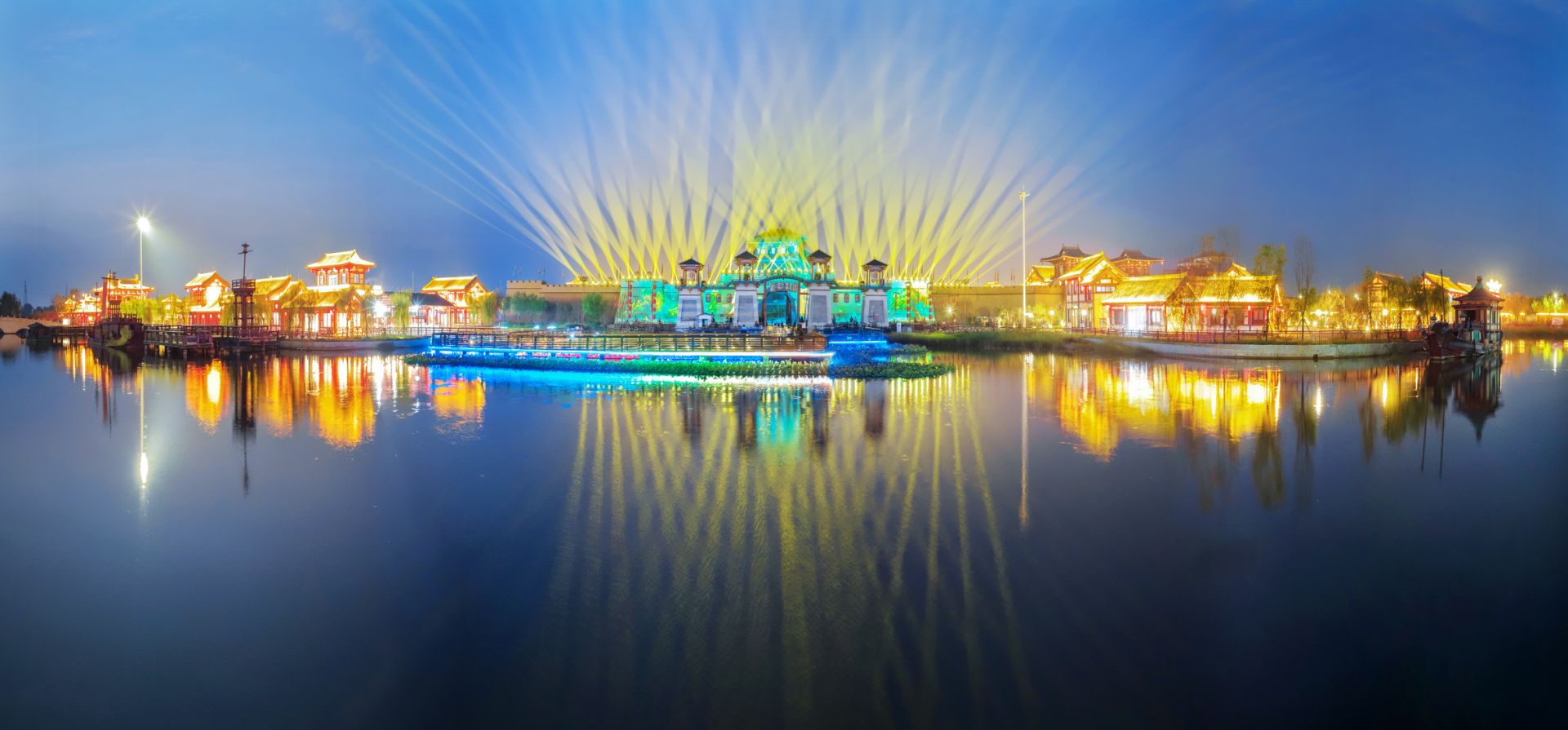 此次采风以“新闻+艺术”为表现形式,覆盖“夜间+日间”“城市+乡村+产业”多元场景。9月12日傍晚,采风团一行来到乐陵影视城。灯光璀璨的仿古建筑,文化演出的精彩瞬间被一一捕捉,凸显影视文旅的独特魅力;随后在拾光街区,复古招牌与市井烟火相映成趣,镜头记录下怀旧文化与夜间经济的融合之美。