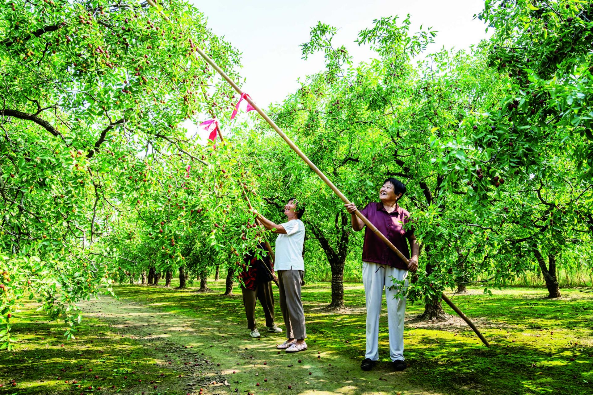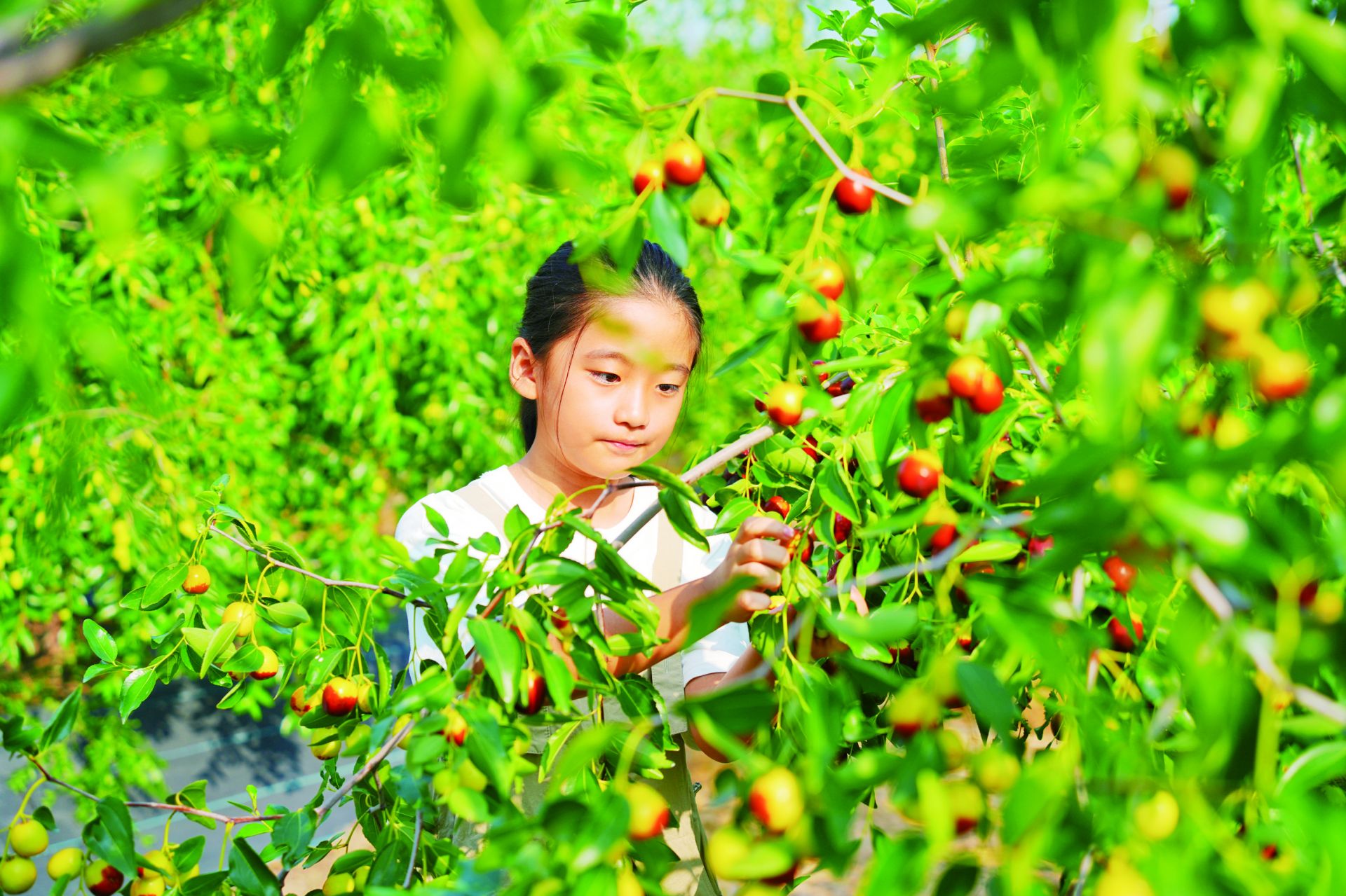 次日清晨,采风团赴枣博园,望海亭下骑行者、枣林间跑团与满目绿意共同绘就“生态乐陵”的活力图景。在朱集镇千年枣林,枣农打枣、游客采摘、老枣树下农民画教学等场景,既彰显千年枣文化底蕴,更展现出乡村振兴的崭新面貌。