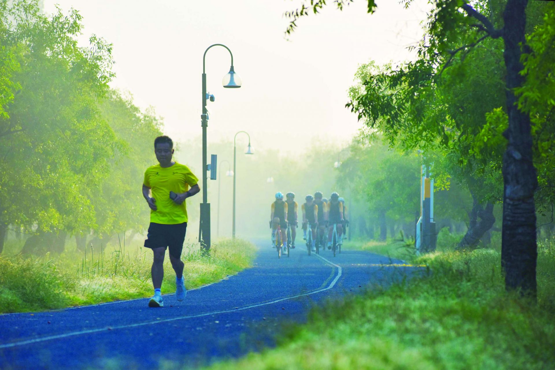 乐陵市枣林健康步道随处可见跑团和骑行爱好者的身影。李连鹏 摄