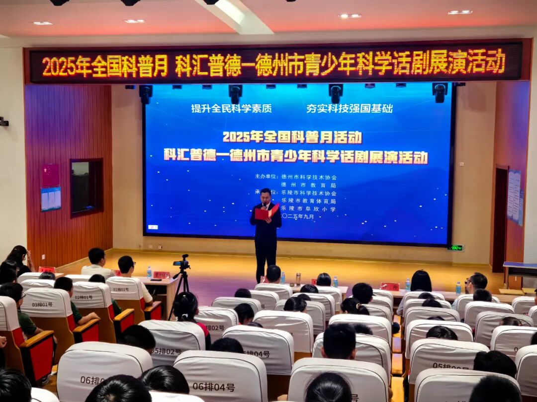 9月28日下午,德州市青少年科学话剧展演活动在乐陵市阜欣小学举行。此次活动由德州市科协、德州市教育局主办,乐陵市科协、乐陵市教体局承办,乐陵市多所小学师生家长参加。