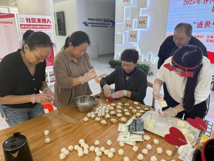 晏城街道永祥社区新时代文明实践站开展“巧手制饼传心意,走访慰问暖人心”文明实践活动。活动现场,工作人员与热心居民围坐在一起,揉面团时的欢声笑语、包馅料时的互相指导、压印花时的惊喜赞叹,交织成温馨的邻里画卷。