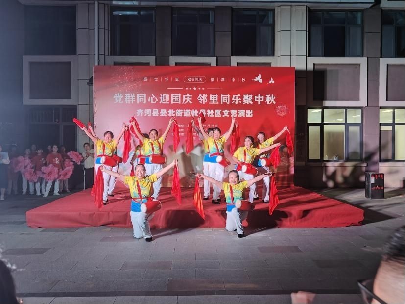 晏北街道牡丹社区新时代文明实践站举办“党群同心迎国庆・邻里同乐聚中秋”庆“双节”文艺汇演。文艺汇演在《鼓动天地》的激昂腰鼓中拉开帷幕。群众自编自演的25个节目轮番上演,歌曲《中国龙》、舞蹈《万疆》等剧目精彩纷呈,太极剑拳、吕剧选段更展现多元文化魅力。此次文艺汇演不仅为居民提供了展示才艺的舞台,更拉近了邻里距离,增强了社区凝聚力。