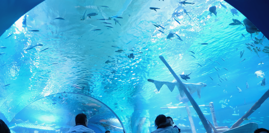 潜入1万㎡的海洋秘境,全景玻璃隧道里,鲨鱼与鳐鱼从头顶游过,美人鱼表演在巨型大洋池上演,300余种海洋生物构成奇幻画卷。