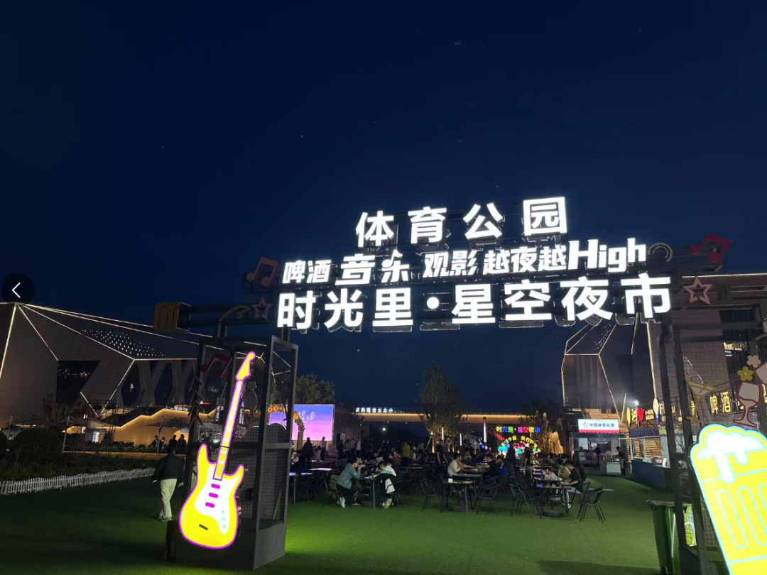 暮色初临时,体育公园北侧的星空夜市已亮起霓虹。