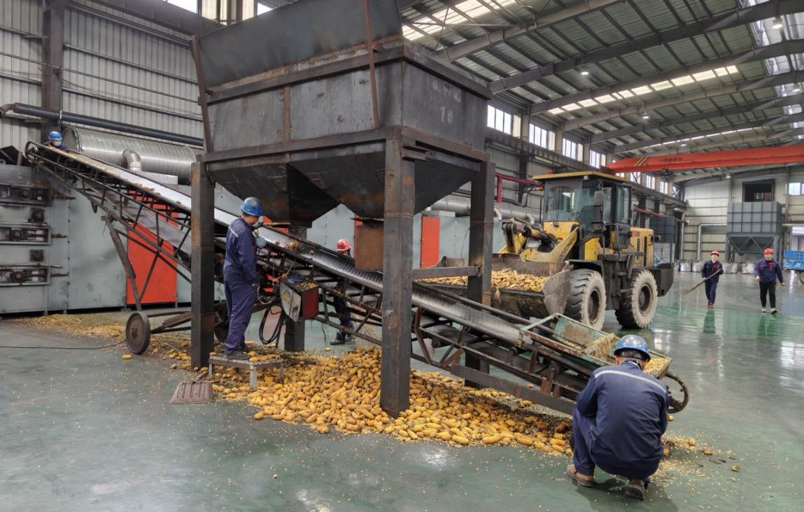 山东卓越作为省级专精特新中小企业,原本以煅后焦、负极材料生产为主业,其烘干线专为碳素材料设计。面对玉米体积大、易卡滞的特点,企业技术团队连夜对进料口、传送带进行加宽加固改造,并增设防堵塞装置。“工业设备烘干农产品,最关键的是调整温度曲线和传送速度。”车间主任李庆龙介绍,团队通过多次试验,最终将烘干温度稳定在适宜区间,既确保玉米干燥均匀,又避免烘焦变质。改造后的生产线目前已实现24小时不间断运行,日均处理量可达200吨以上。