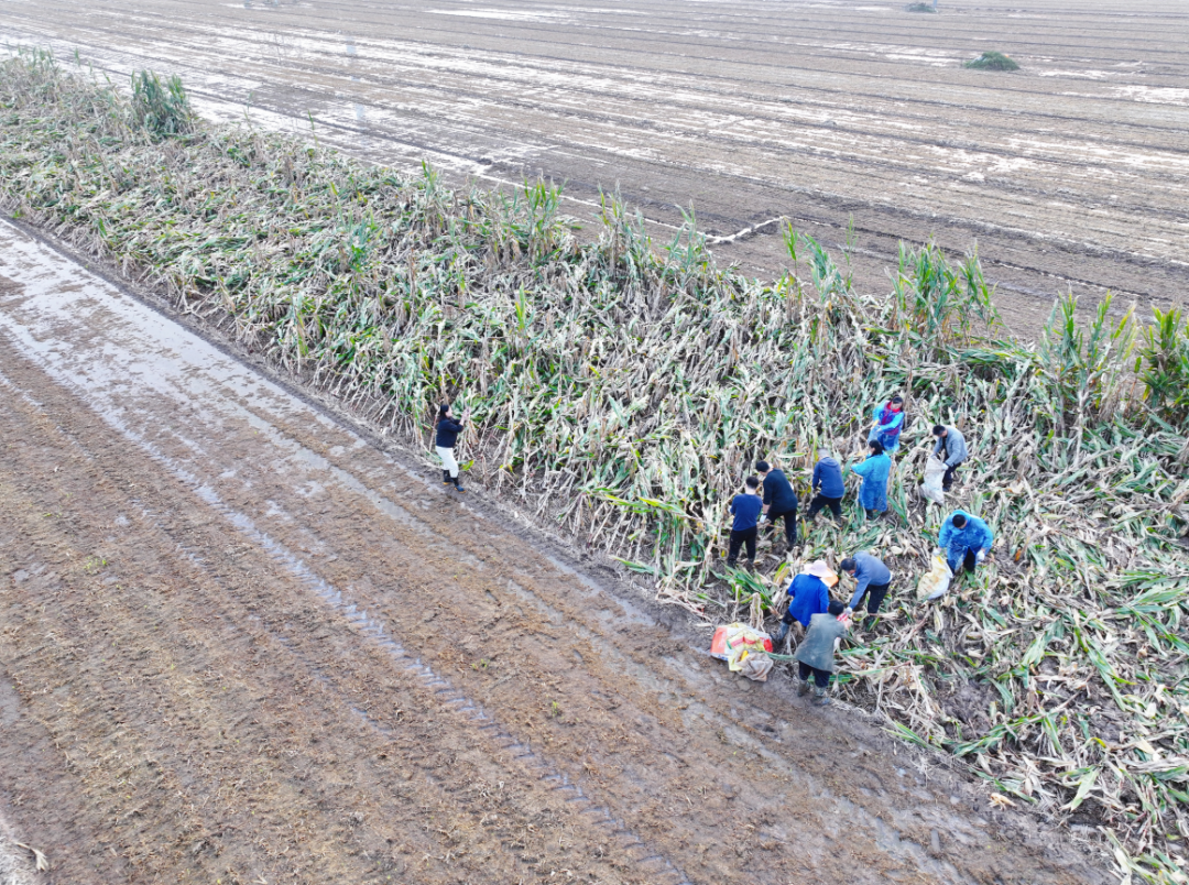 在赵虎镇岳庄村,天衢建设发展集团更是组成了10余人的帮扶队,一头扎进了村民岳世收的玉米地。排水、掰棒、装运……队伍忙碌却有序。岳世收的妻子腿脚不便,面对数十亩待收的玉米一度愁眉不展。“多亏了咱们的帮扶队,不然真不知道咋办!”他的话道出了许多受助农户的心声。