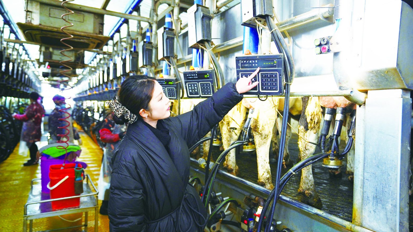 1月22日上午,室外寒意袭人,乐陵市金亿奶牛养殖专业合作社的场长办公室内却暖意融融。“00后”女场长候博文,专注地盯着眼前的电脑屏幕,看到牛舍的数据平台上,一串绿色符号中出现了一个红色符号,她立即拨通兽医电话:“翁医师,8-4牛舍的19149号牛跑到7-2舍了,麻烦您把它送回去。”