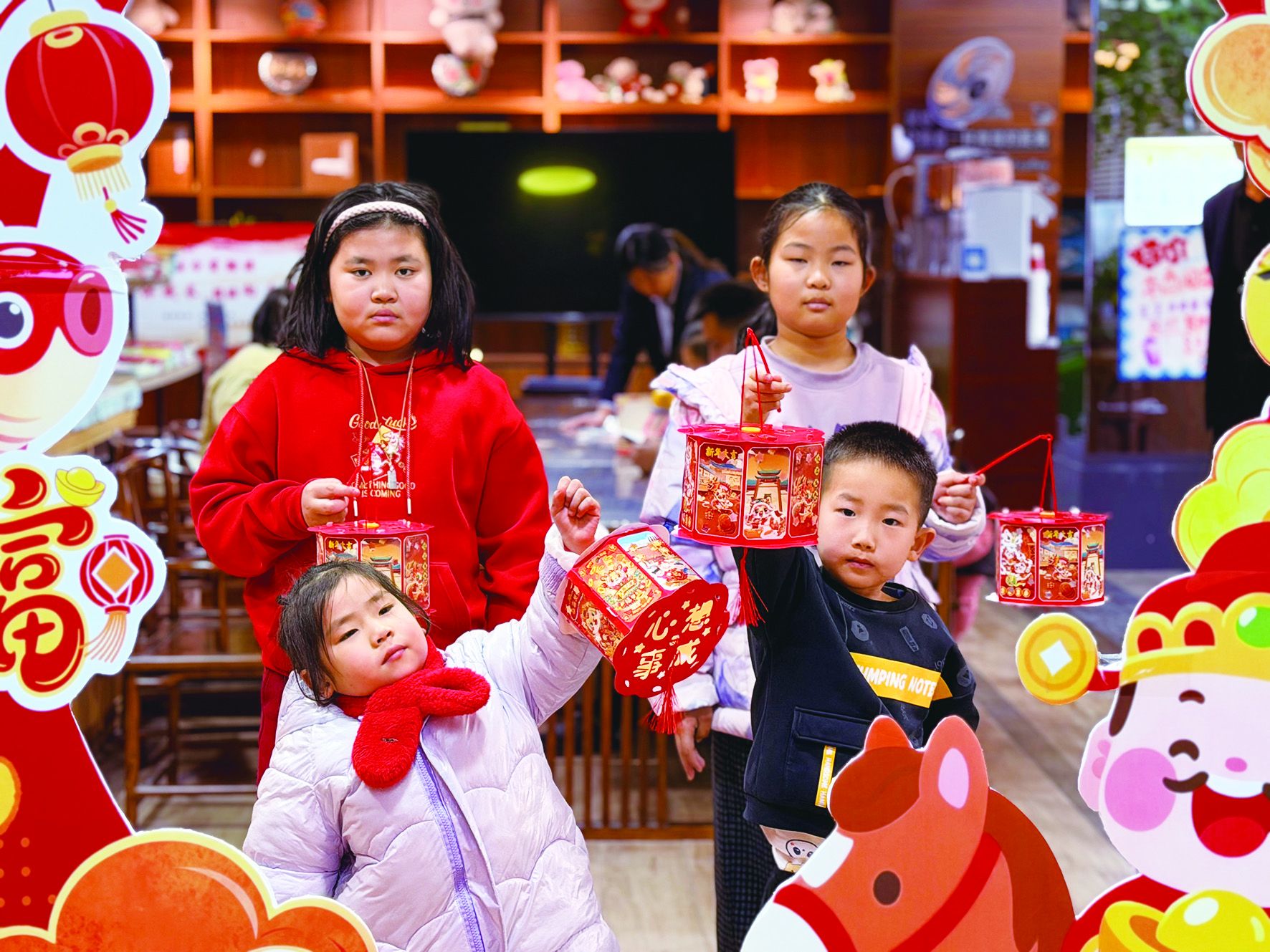 新华书店也成了春节热门去处,“寒假读一本好书”主题展区前许多家长带孩子挑选图书。书店走进社区、赶大集,把书香送到百姓身边,拓福字、非遗剪纸、艾草锤制作等趣味活动场场爆满。