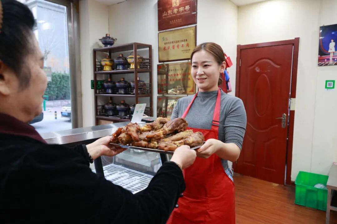守着守着,名气就守出来了。从齐河到德州再到全省,她带着酱香羊腿走遍山东各地,登上了各级电视。“那时候政府给咱搭台,让咱有机会去参加美食比赛,把齐河的美食推广出去。”杨桂贞说。