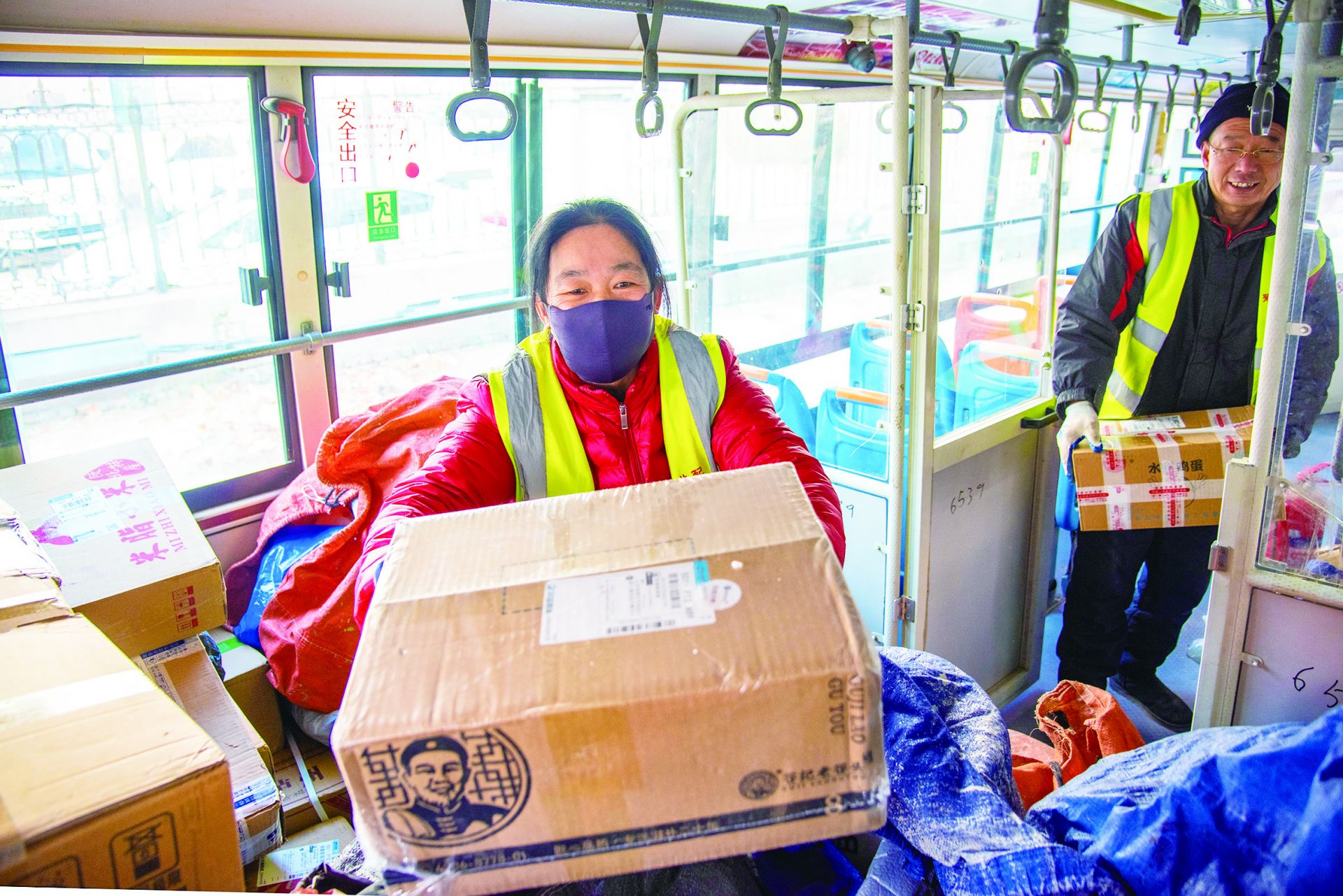 3月30日上午9时30分,伴随着清脆的发车铃,禹城市61路城乡公交车准时从客运中心驶出。车厢内,除了10余名乘客,后排还整齐码放着数百件快递包裹。