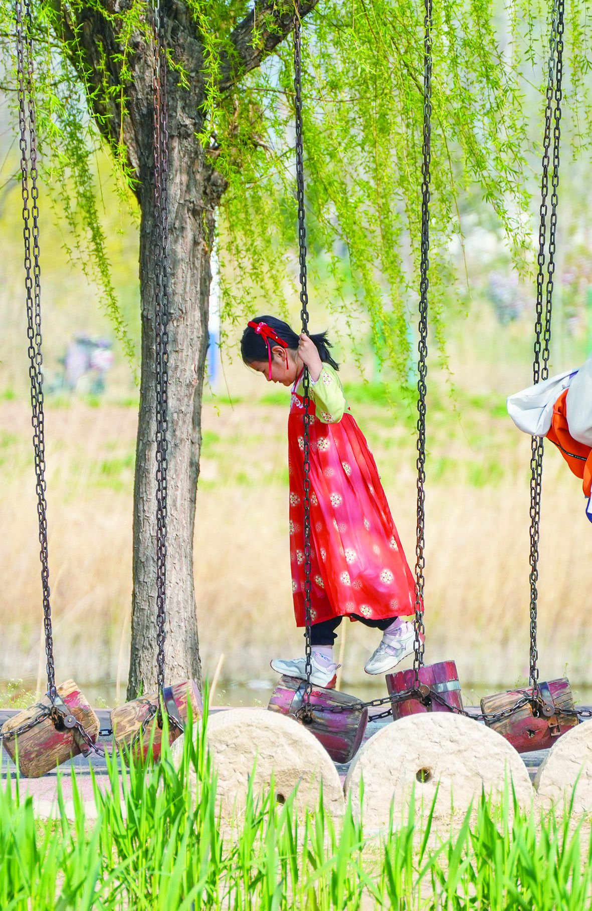 暖阳之下,景区洋溢着轻松愉悦的氛围。不少市民携家人前来,用镜头定格春日美好,或静坐闲谈,或漫步赏景。孩童们在花间嬉戏奔跑,欢声笑语不绝于耳,为春日增添了几分灵动生机。