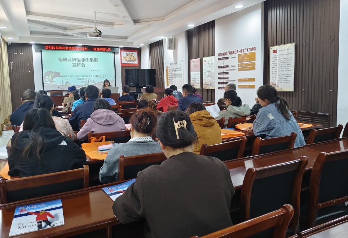 为进一步提升辖区居民对非法集资的防范意识和识别能力,4月23日下午,德城区财政局工作人员利用党员活动日到天衢街道果园社区开展防范非法集资宣传教育活动,引导居民树立正确理财观念,筑牢金融安全防线。