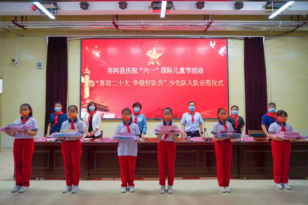6月1日,齐河县举行庆祝“六一”国际儿童节活动暨“喜迎二十大 争做好队员”少先队入队示范仪式。