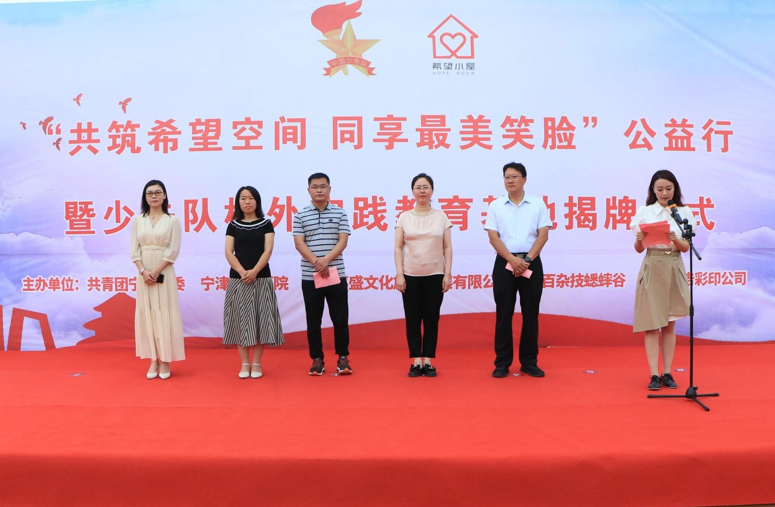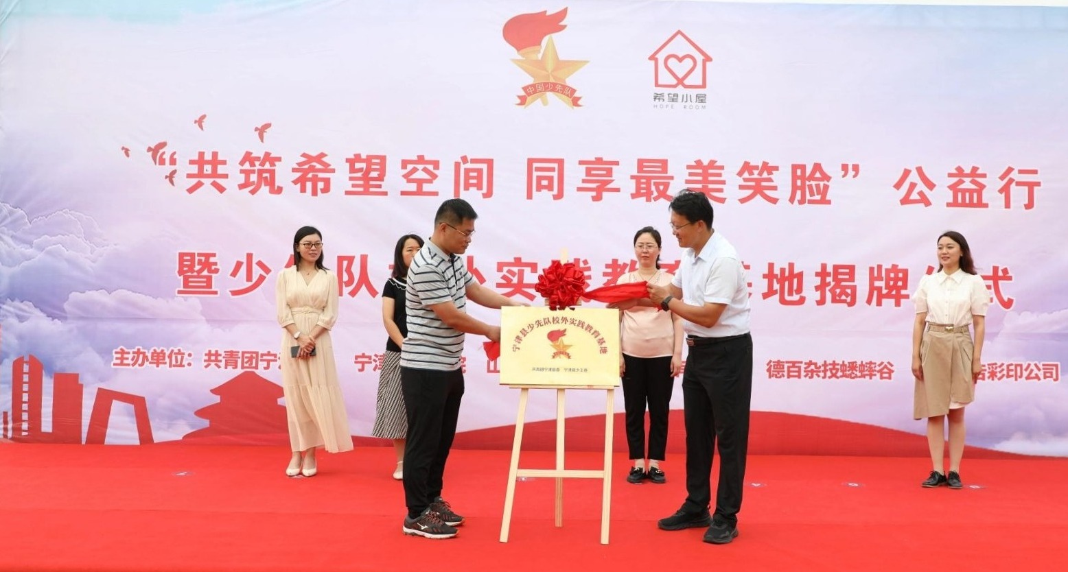 “共筑希望空间 同享最美笑脸”,6月4日,宁津德百杂技蟋蟀谷被共青团宁津县委授予宁津县少先队校外实践教育基地,并举行揭牌仪式,同时为“希望小屋”儿童发放爱心礼包。