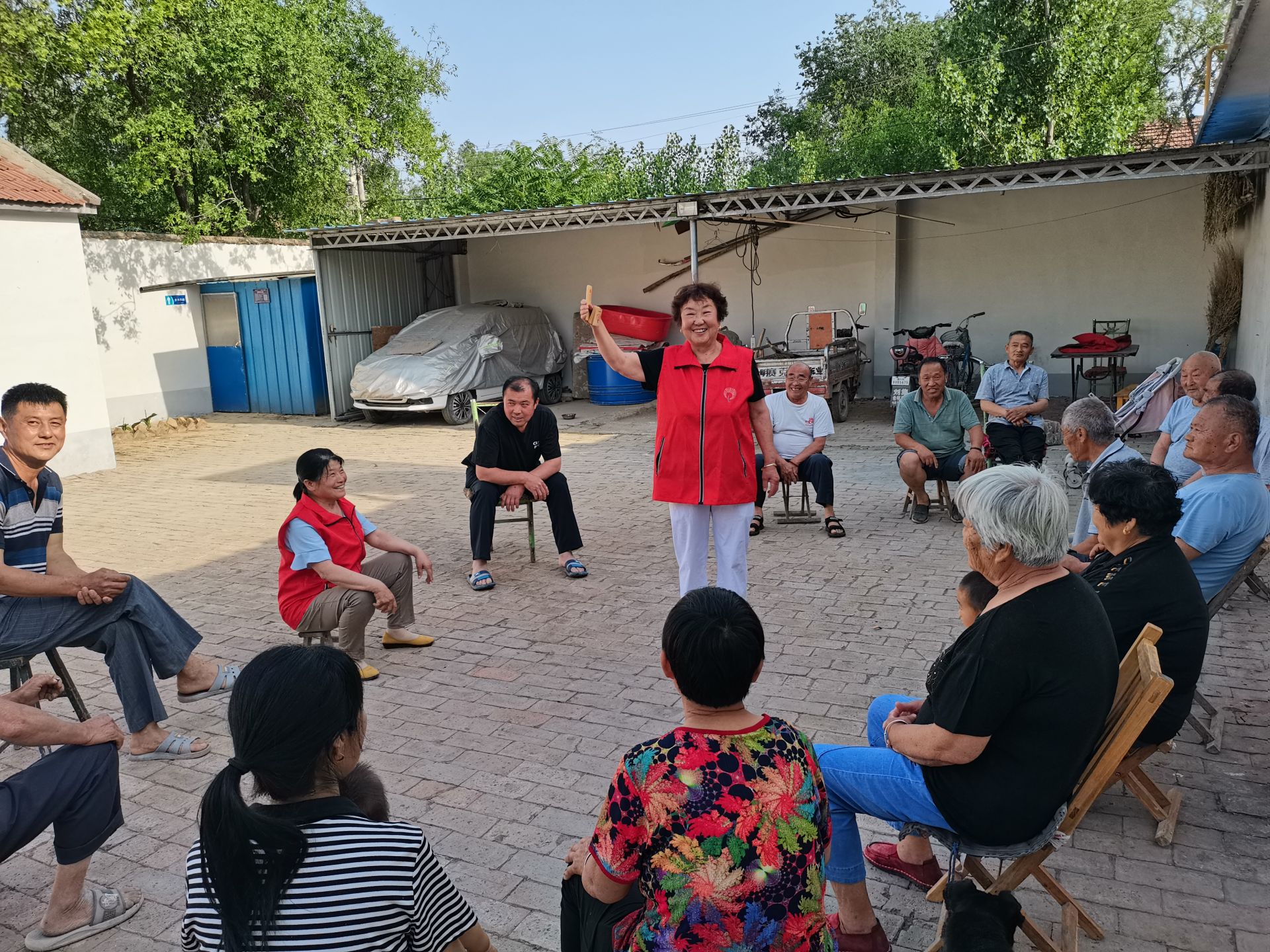 6月7日下午,乐陵市孔镇镇孔达村郭秀英文明实践家庭站的院子里又热闹了起来。“新农村、新风貌,思想跟进很重要!生厚养,离薄葬,陈旧风俗要改样。爱家园、讲卫生,人人环保不能忘······”欢乐的快板节奏让群众觉得既动听又入心,纷纷举起大拇指点赞66岁的志愿者郭秀英老人。