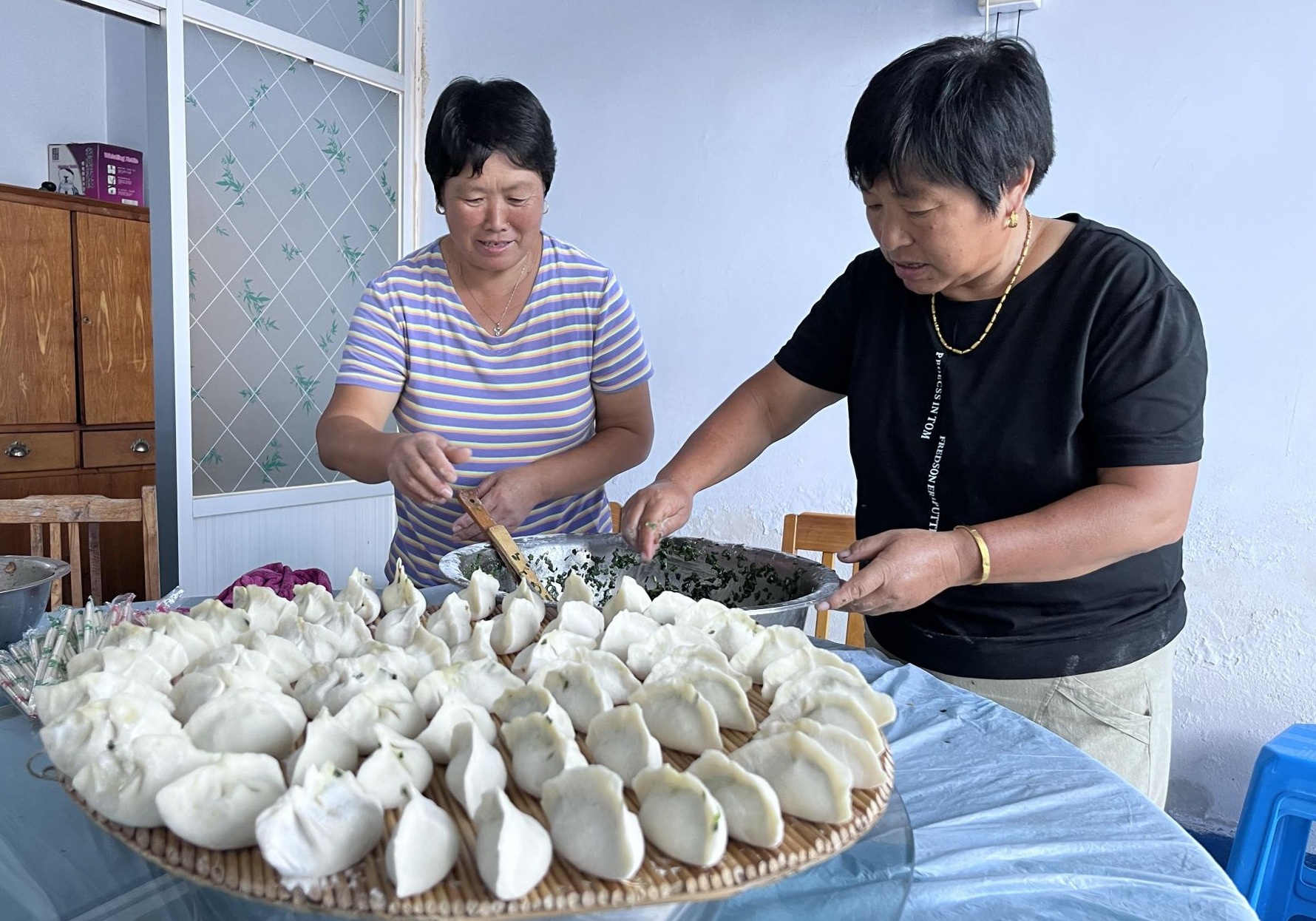 “我们几个刚下完象棋,来吃饺子啦。”9月7日中午12时,常家镇大高村80岁的刘以波老人来到本村的“暖心食堂”,与同伴们共享午餐。