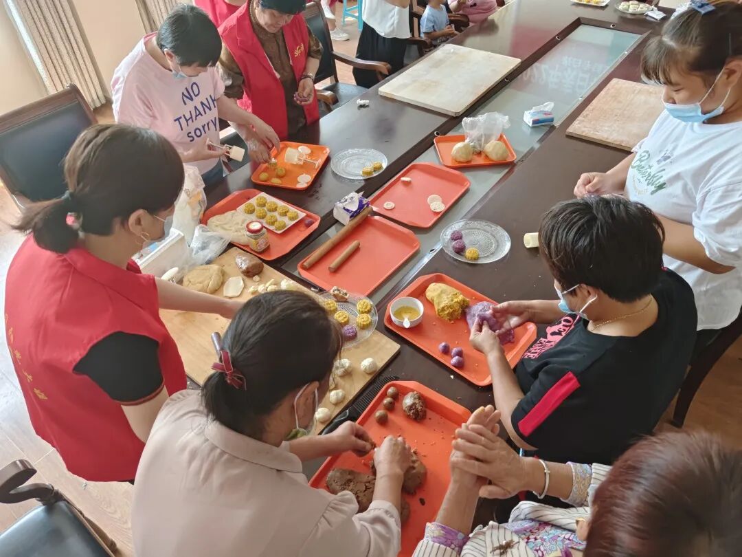 在谭家村党建办公室开展了亲子互动中秋传统美食—月饼的制作活动。活动现场老师演示了月饼的制作过程,孩子们负责将内馅搓成圆滚滚的小球,家长们则把孩子们搓好的内馅轻柔地包进金黄的月饼皮内,每个人都化身月饼师傅。