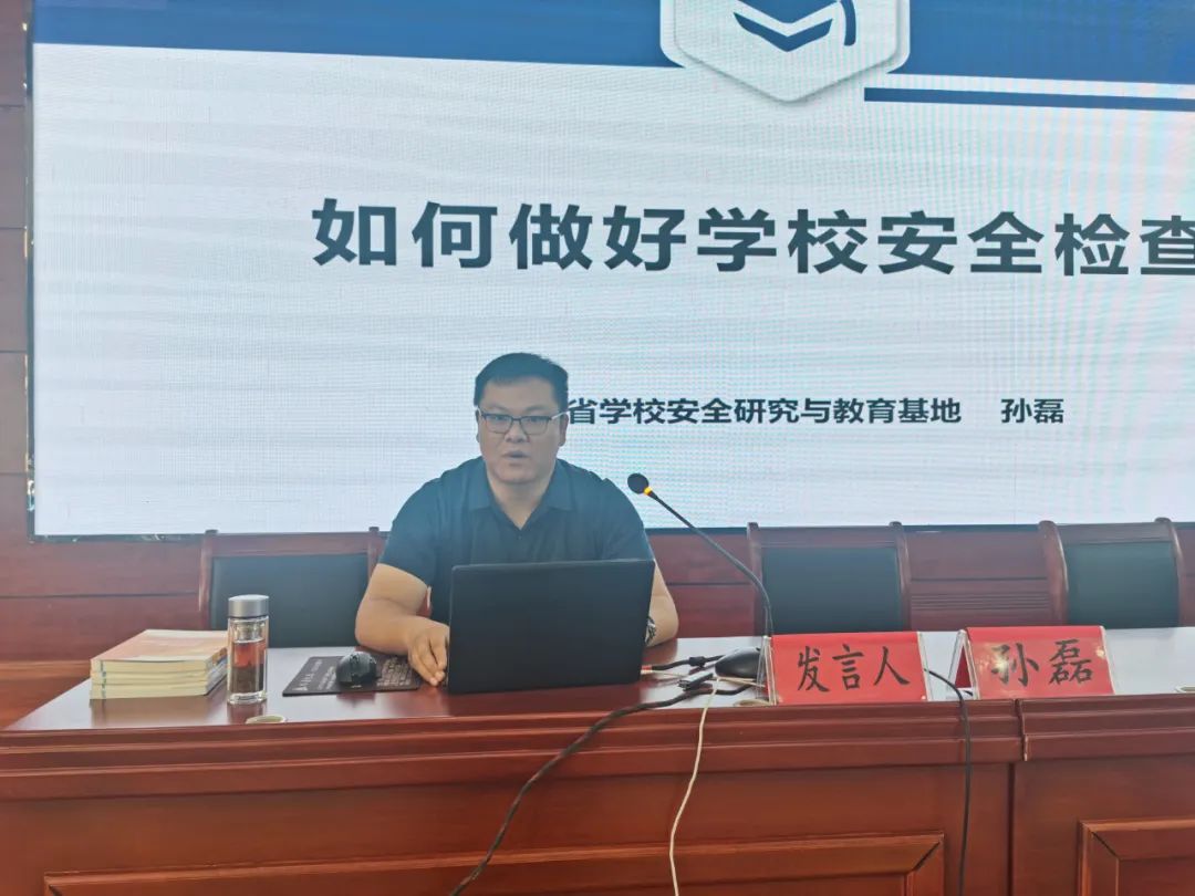 山东省学校安全研究与教育基地宣传教育部部长、山东省学校安全专家库成员孙磊就如何做好学校安全检查进行授课。主要从传统安全管理与现代安全管理的差别导入,通过理论概述、安全自查与隐患排查、督导检查常见问题等三个方面进行了全面清晰地讲解。指出各中小学校务必要将自查工作真正全面落到实处,各类档案清晰归类,及时排除各项隐患,保障师生安全。