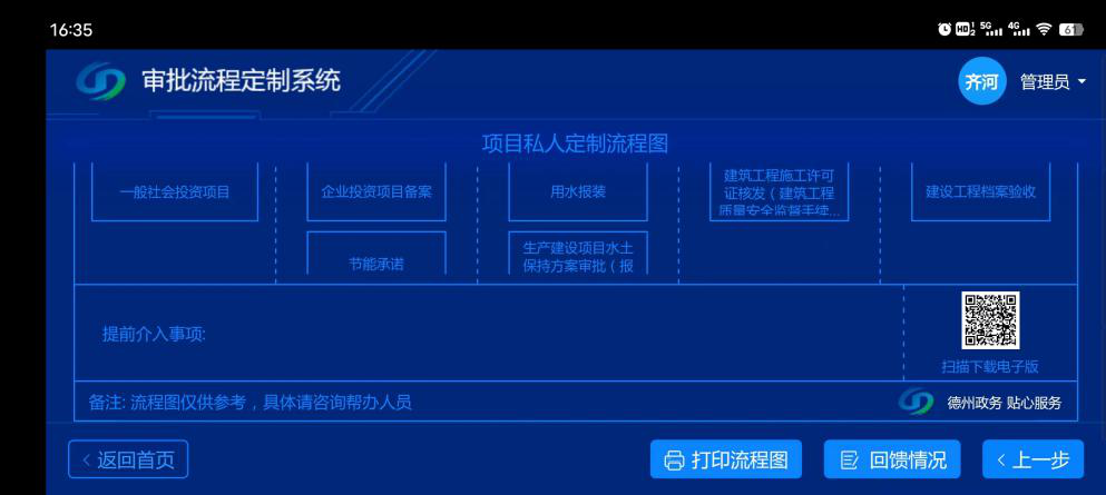 二是推行“私人定制”项目审批流程图。对建设项目全面推行审批流程定制,由帮办人员将项目信息录入系统,通过系统为项目定制专属审批流程图。同时推送各审批事项办事指南、办事流程、收费标准、办理时限等内容,形成一个二维码,企业只需扫一扫,就能一“码”获取事项名称、办理时限、收费标准等信息,解决办事人不清楚办理流程和申请材料的难题。