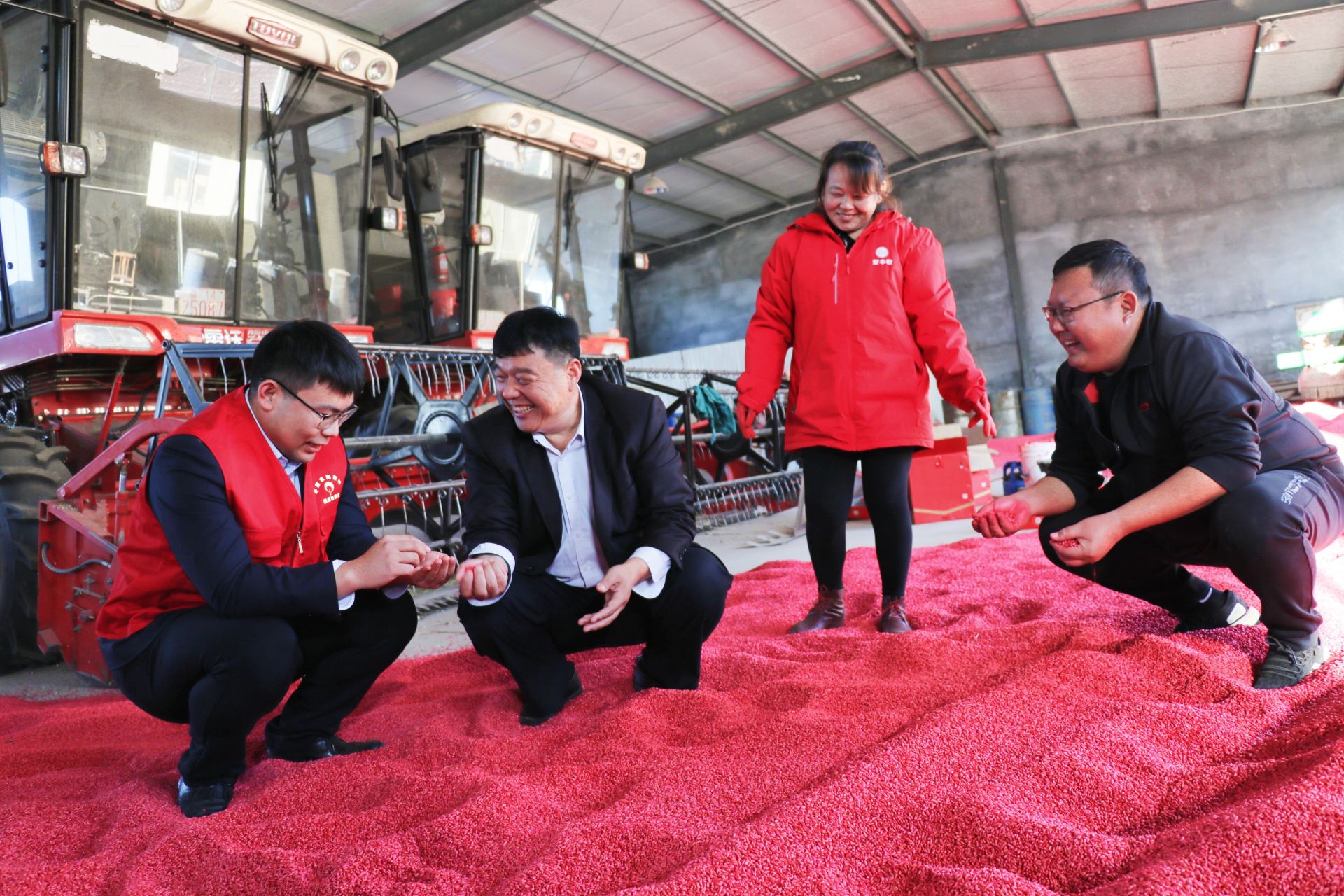 10月12日,平原县三唐乡千佛塔社区南杨村土地股份合作社小麦麦种制衣车间,合作社理事长、村党支部书记李海东正在带领工人们配药、加工、晾晒麦种,他说:“玉米收割完后,我们将马上组织小麦播种。这些年来,我们南杨村经济的发展变化,与平原农商银行的支持是密不可分的。”