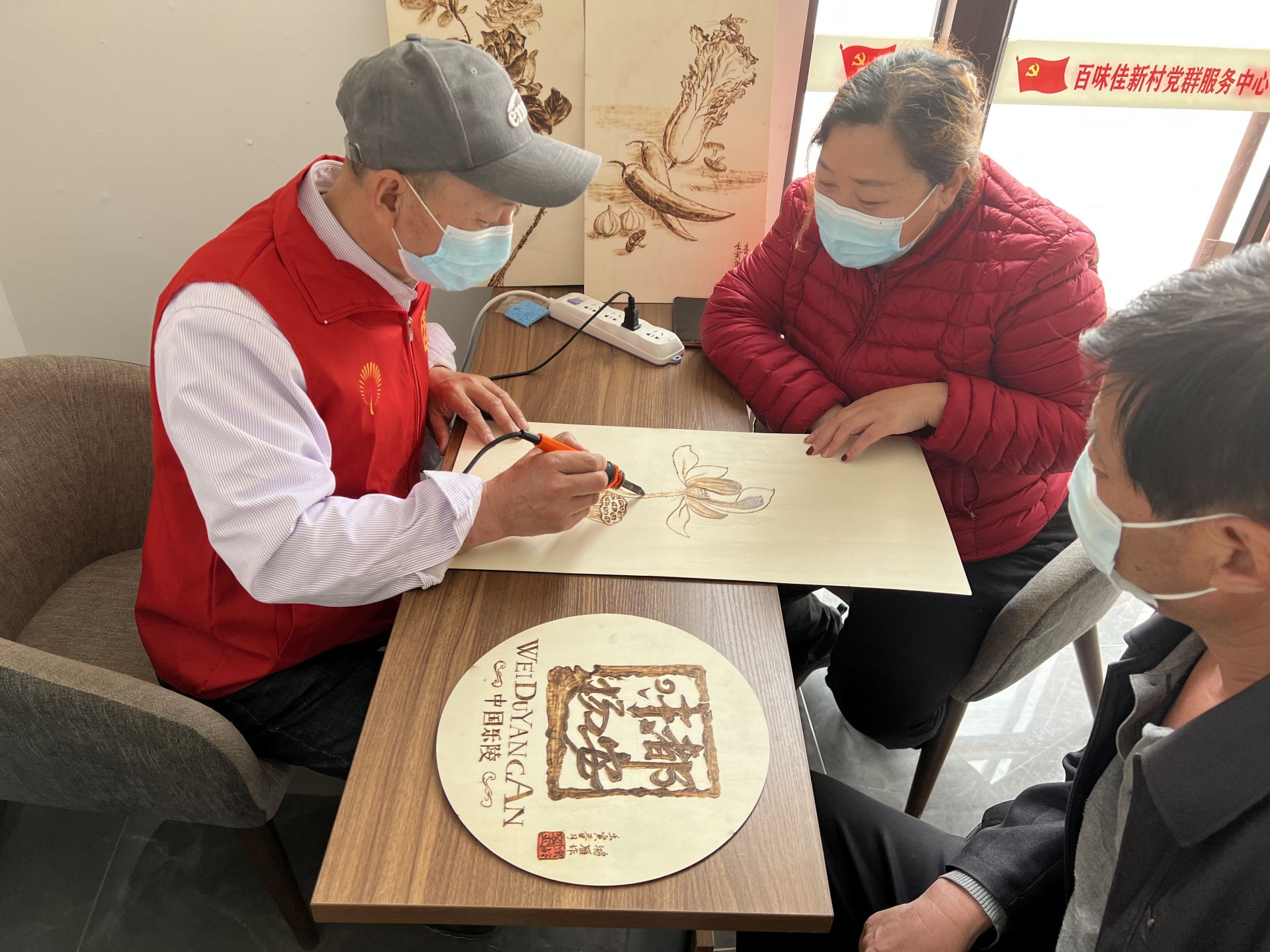 一张宣纸,一支电烙笔,笔尖落下,伴随着缕缕青烟,空气中散发出淡淡的烧焦味道,宣纸上一幅幅活灵活现的烙画图案也逐渐清晰……11月7日,在乐陵市杨安镇百味佳新村新时代文明实践站,“味都杨安”农民文化艺术团志愿者刘宗岭正耐心地为村民传授烙画技术技艺和传承。