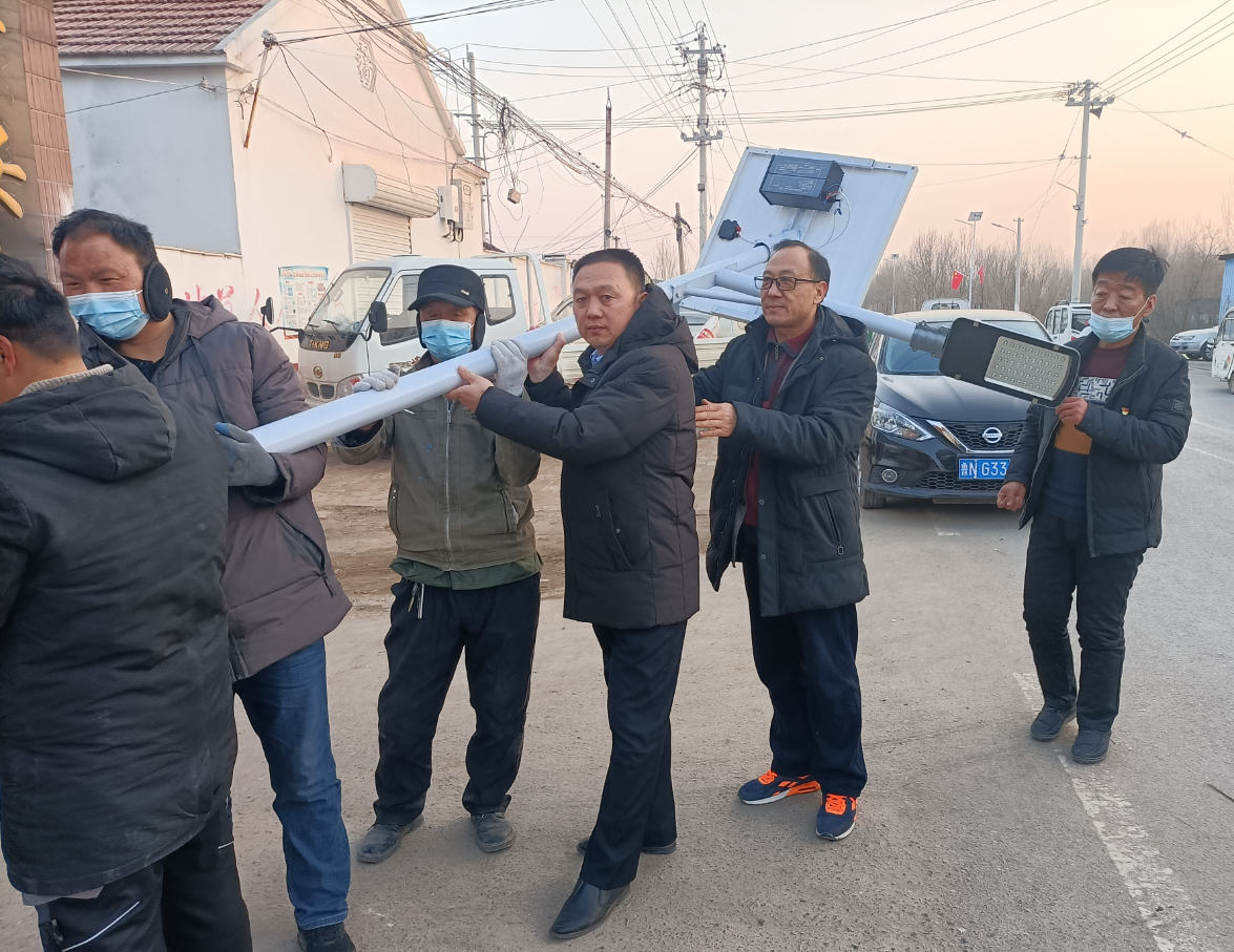 寒冬腊月,粉妆玉砌,折胶堕指,而一个场景与之形成鲜明对比——安装路灯施工现场如火如荼,每个人都大汗淋漓、干劲十足。刘风华带领村“两委”班子和党员冲在施工第一线,与志愿者们一道,刨土、挖坑、搭基座,你一锹、我一镐,渴了喝口凉水,饿了啃个馒头,每天清早5点30准时上工,晚上天大黑了才收工,5天时间便完成了全部工程,此时已到了年二十八,第二天便是除夕。