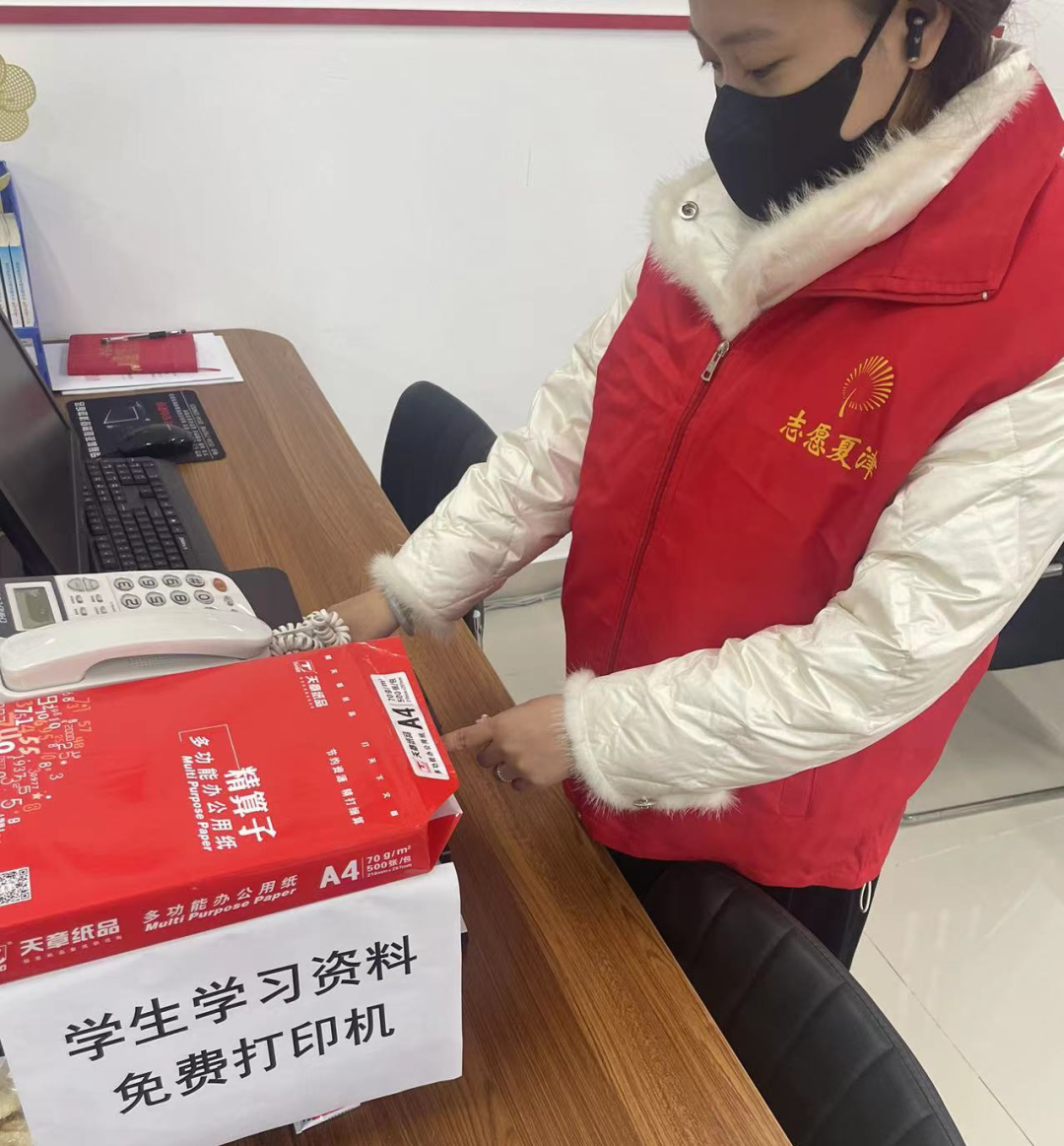八是资料打印一对一服务,针对学生居家上网课等问题,各社区志愿服务队提供免费打印网课资料等相关服务。