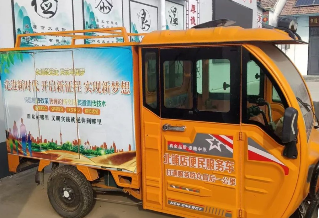 在夏津县苏留庄镇北铺店村,一个贴有群众在哪里,文明实践就延伸到哪里的便民服务车停靠在家风广场上,志愿者牟光富常年驾驶这辆便民服务车,帮助群众免费维修出现故障的电视机、电饭煲、电动车等家用电器。