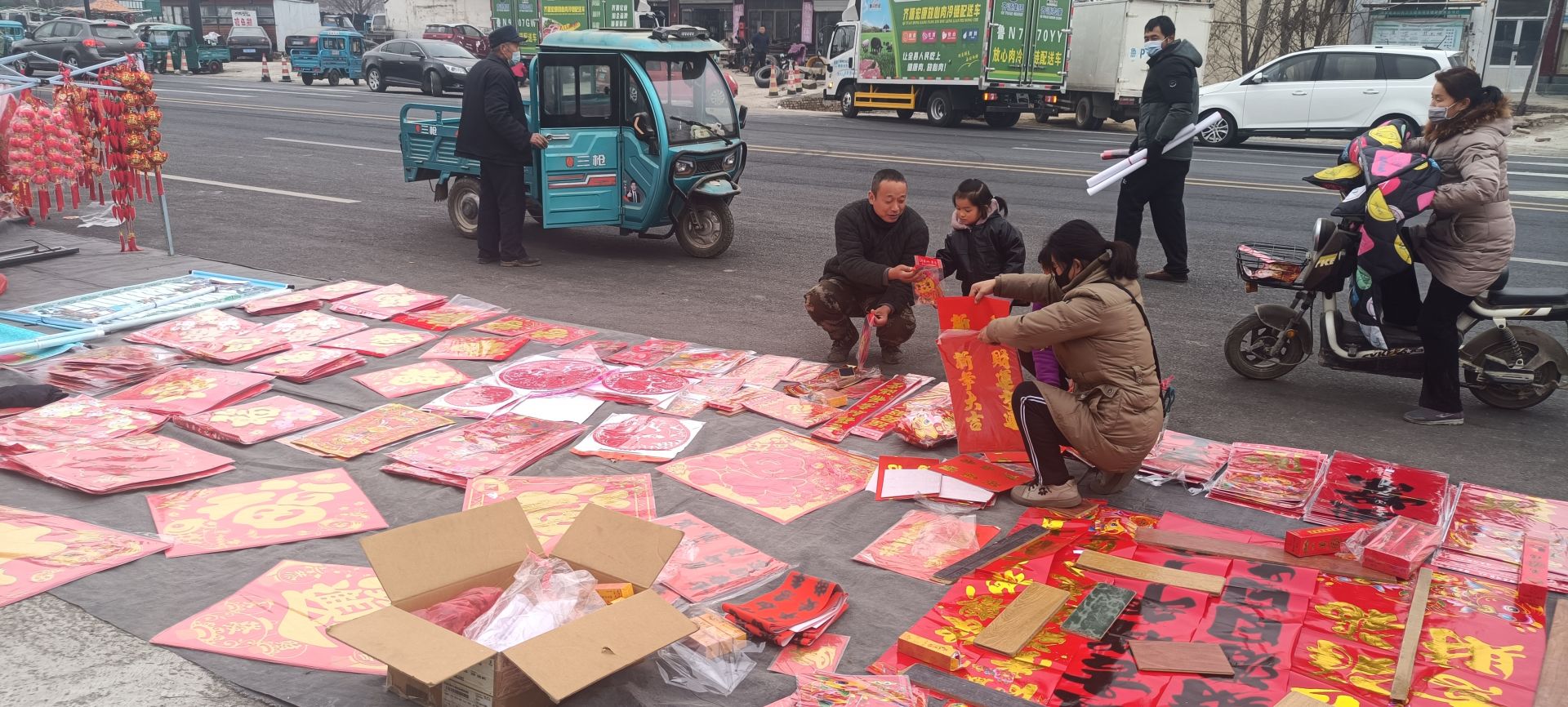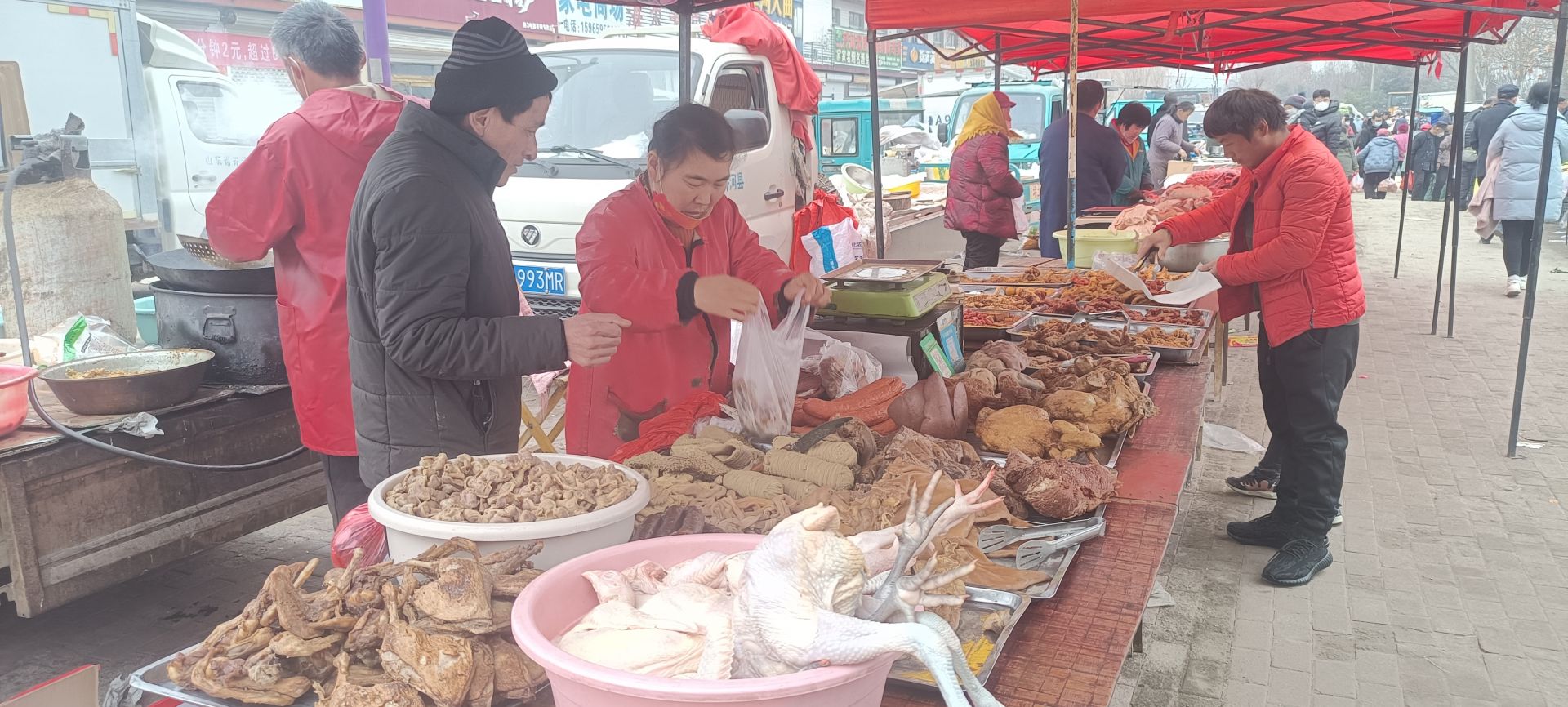 集市上吆喝的、问价的、收款到账的声音仿佛奏响欢乐祥和的的春节序曲。经过了一年的奋斗和拼搏,老百姓就期待着阖家团圆的日子,置办的大包小包的年货也是如今富裕生活的体现。张博士村种粮大户张有勇说:“今年政府给我的支持政策更实惠,灌溉设施都升级了,我家一千亩粮食产量高、价格稳,丰收年必须好好庆祝,今天是开着小货车来大采购的。”经营了十来年干果摊的老板李大龙也喜欢这个年集,他知道每年华店年集都是销量冠军,因为这里企业多,好多农民都家门口打工成为产业工人,收入增长,也越来越追求生活品质。