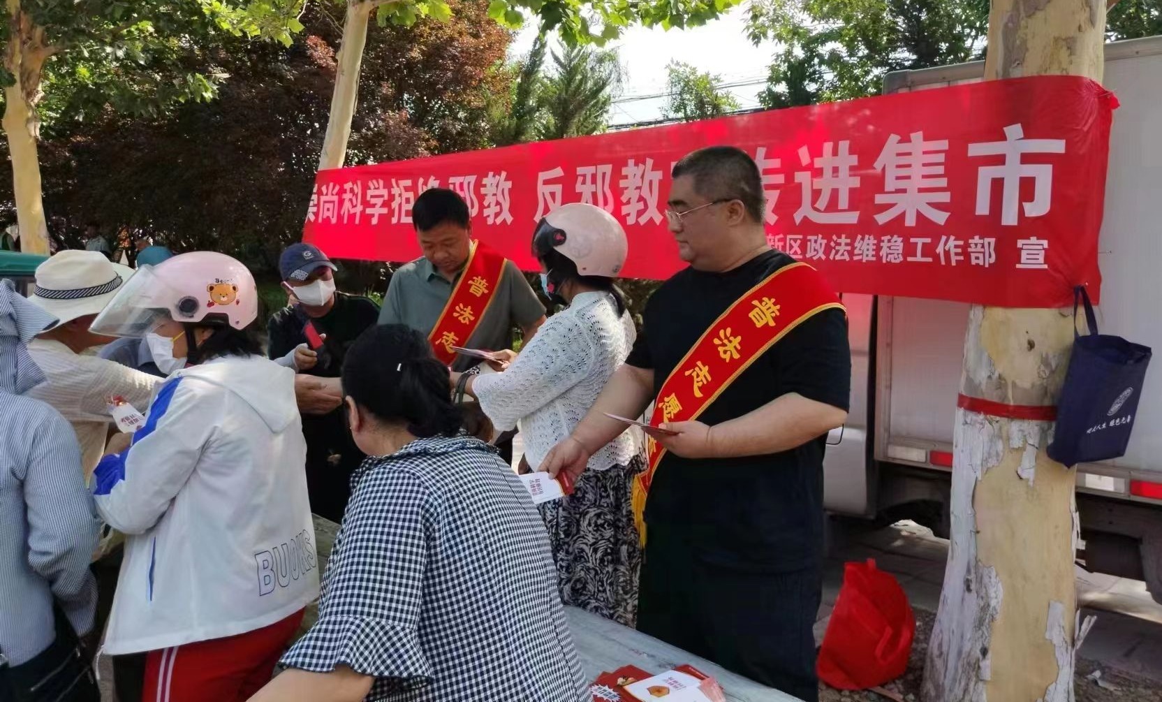为进一步增强辖区群众反邪教意识,提高抵御邪教侵蚀的能力,广泛发动群众积极揭举、揭发各类邪教违法犯罪活动,6月16日,天衢新区政法维稳工作部联合袁桥镇政府开展“崇尚科学,反对邪教”赶大集活动。